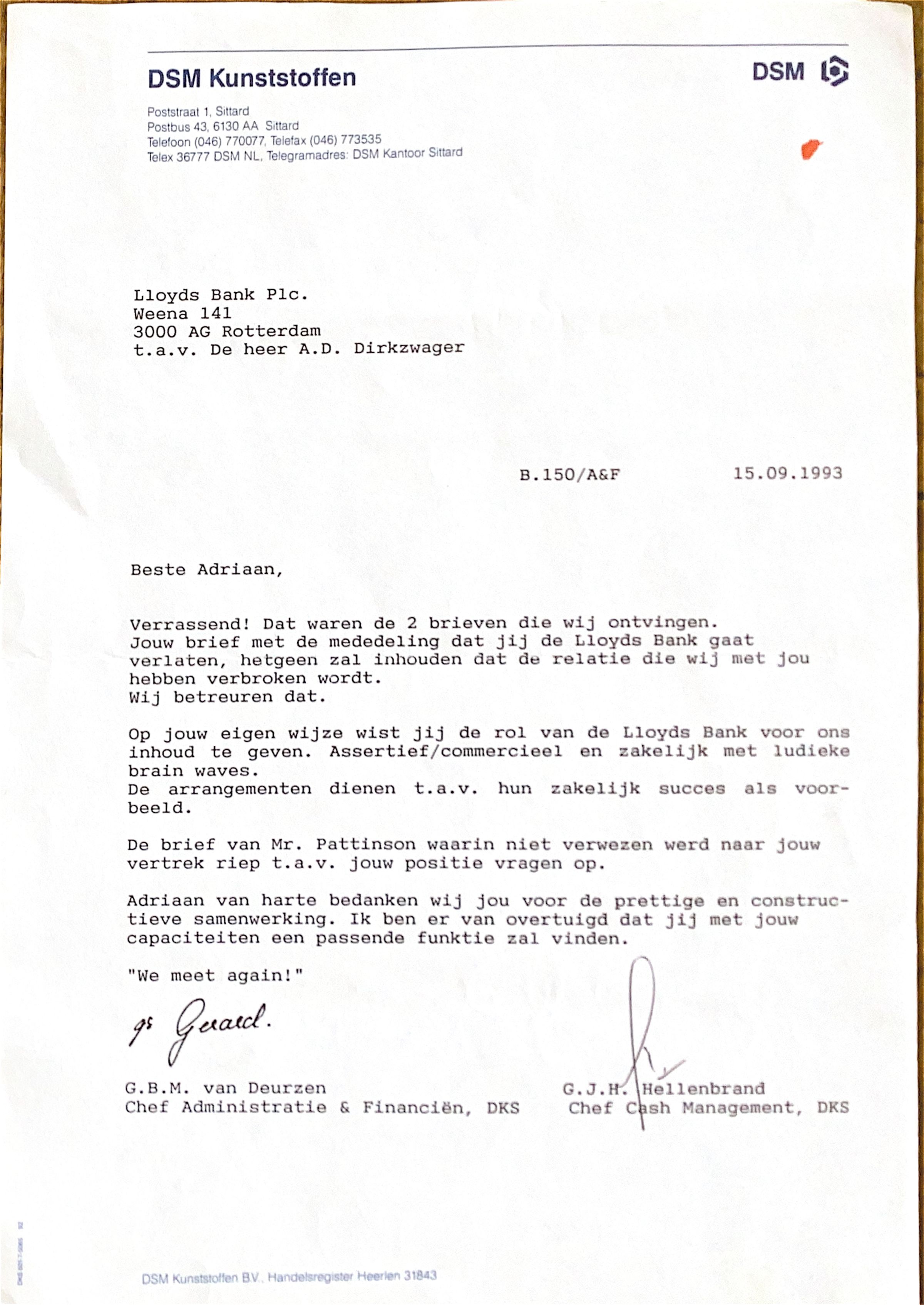 Jouw brief met de mededeling dat jij de de Lloyds Bank gaat