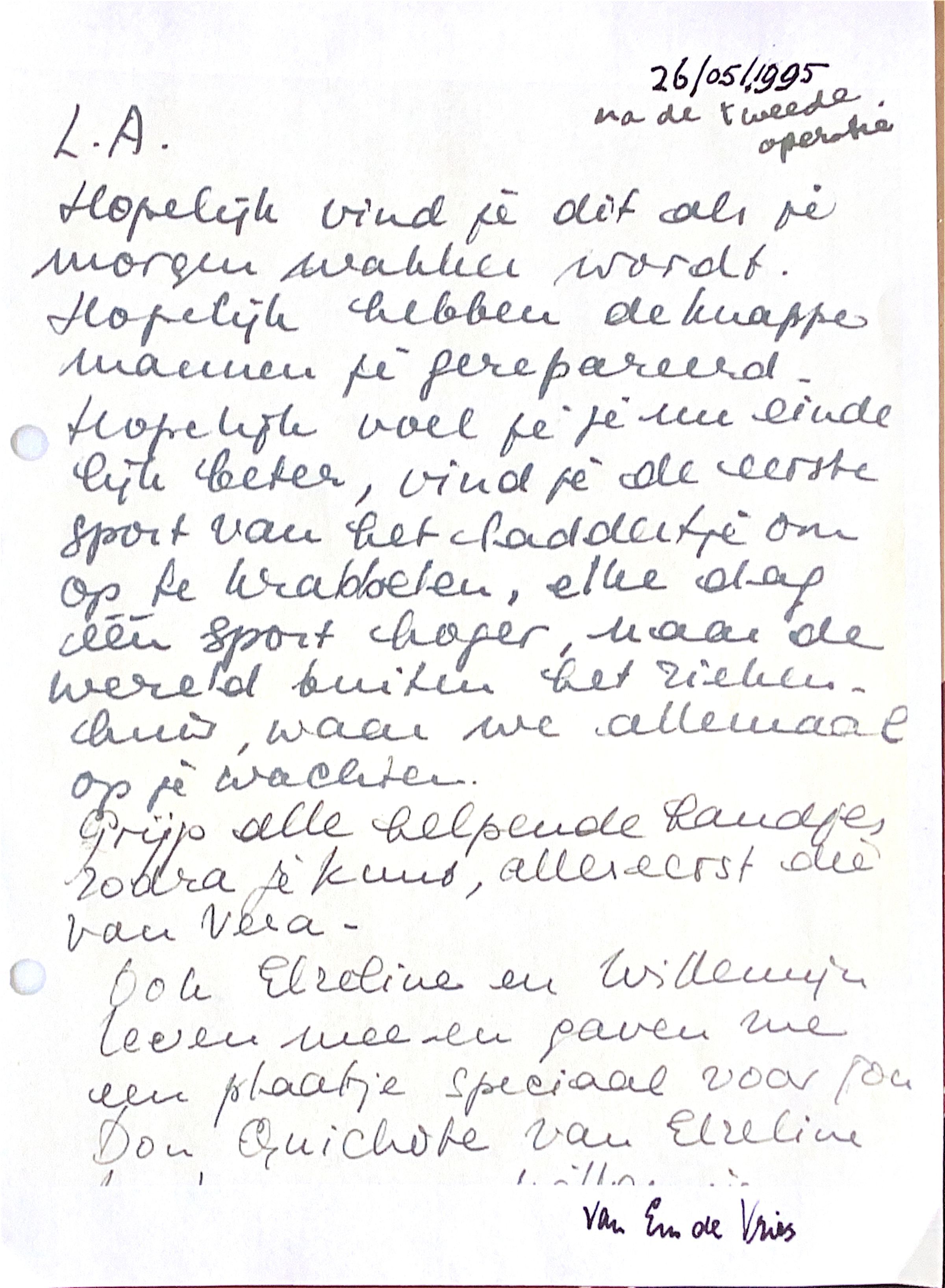 1995-05-26 Kattebelletje van Em na mijn tweede operatieSubject Person/Organization
