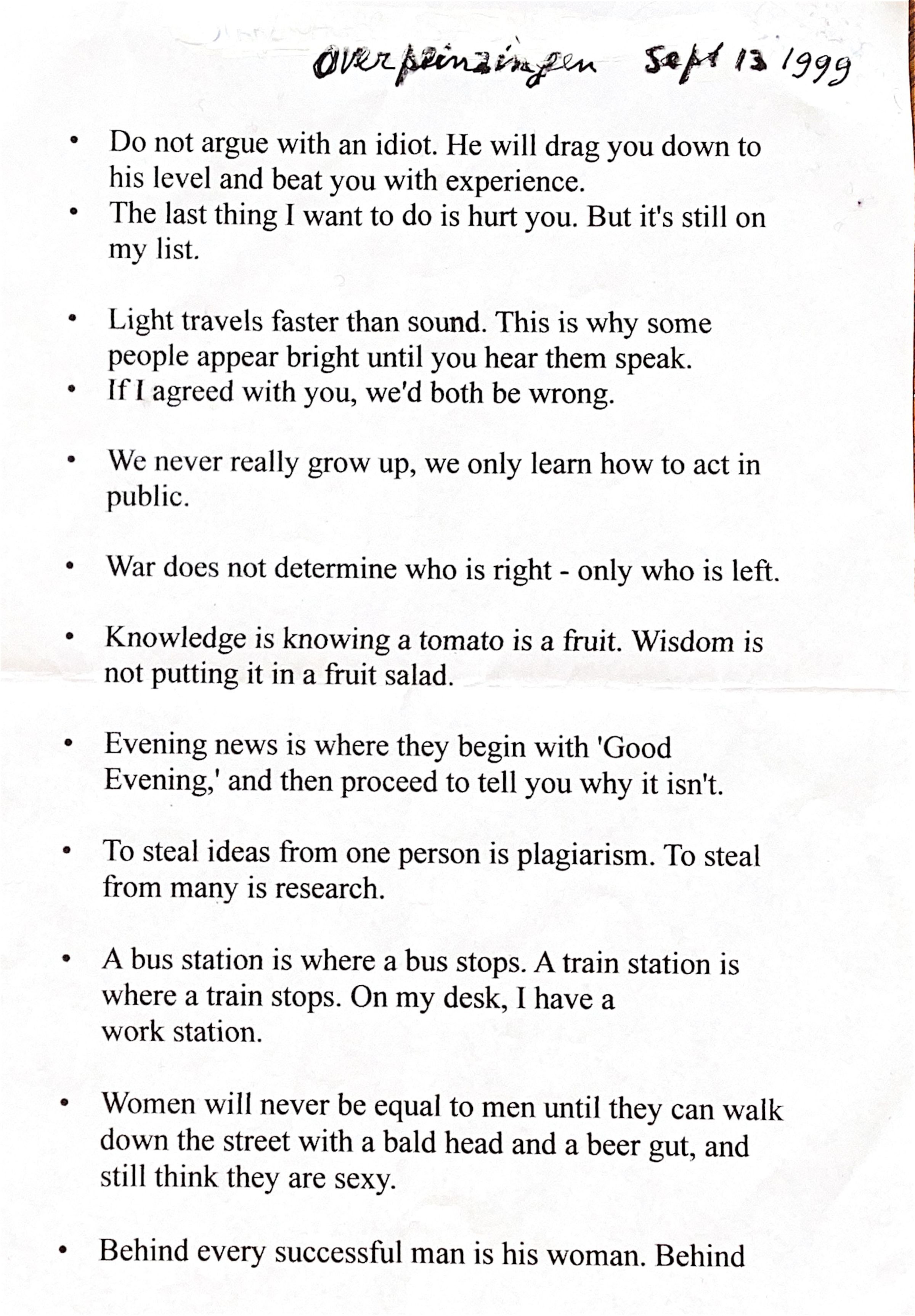 9) To steal ideas from one person is plagiarism. To steal from many is research.