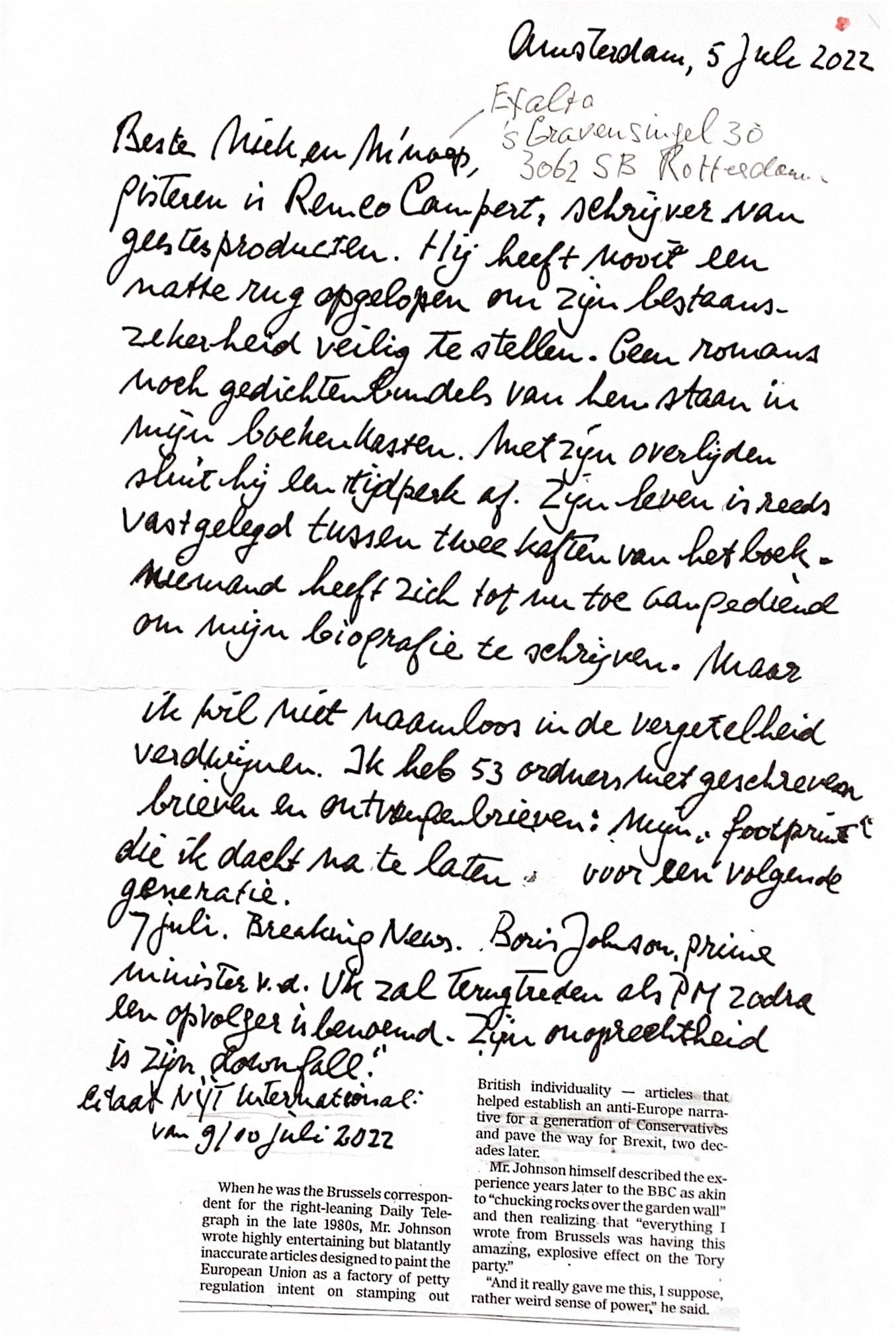 Citaat NYT International van 9/10 juli 2022