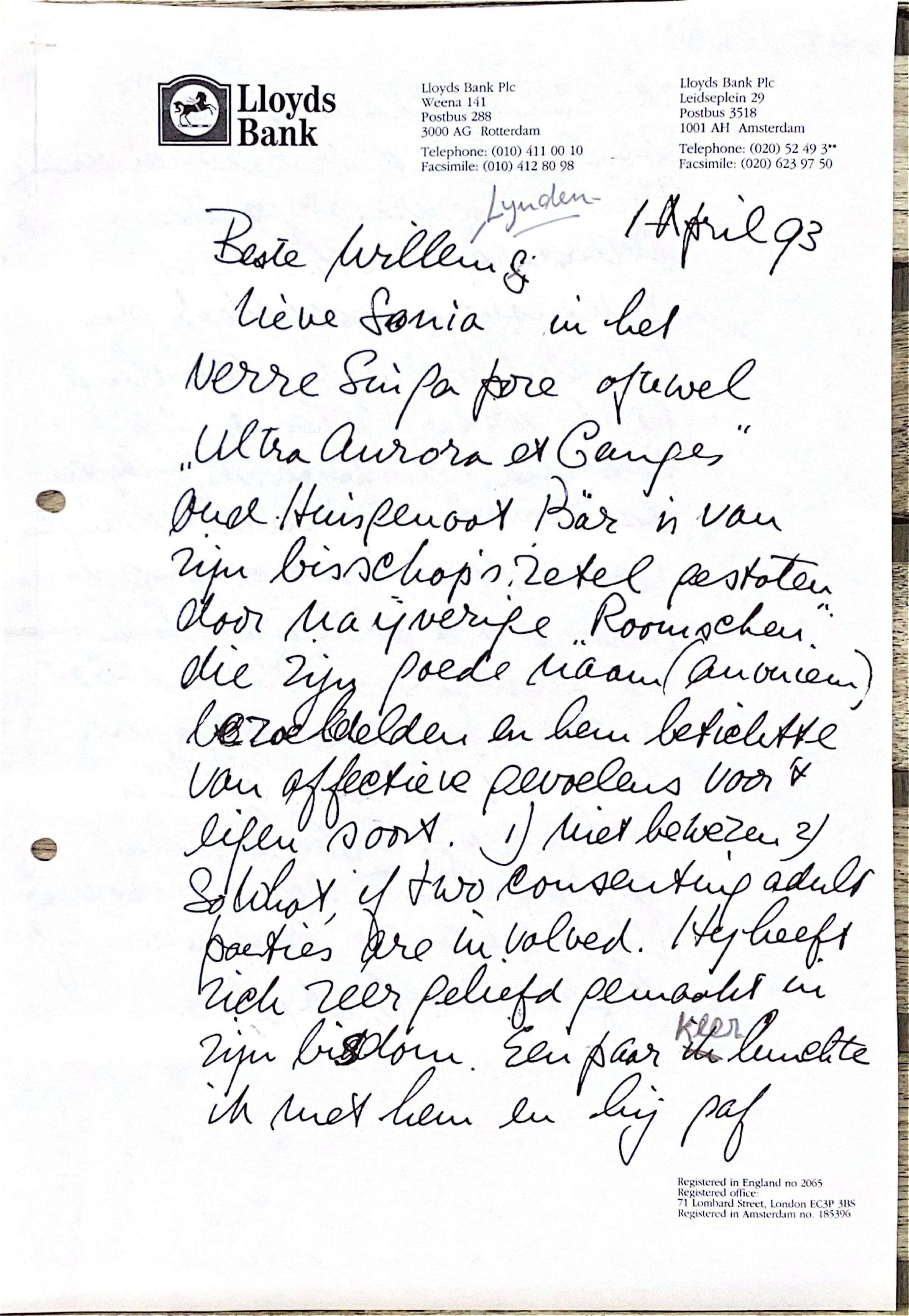 Hij heeft zich zeer geliefd gemaakt in zijn Rotterdamse Bisdom. Een paar keer heb ik met hem geluncht en hij gaf NLF 1000,- aan de Stichting Zuilenstraat 13 voor de renovatie van Zuilenstraat 17 in Utrecht met de opmerking: "Van de ene arme organisatie naar de andere."