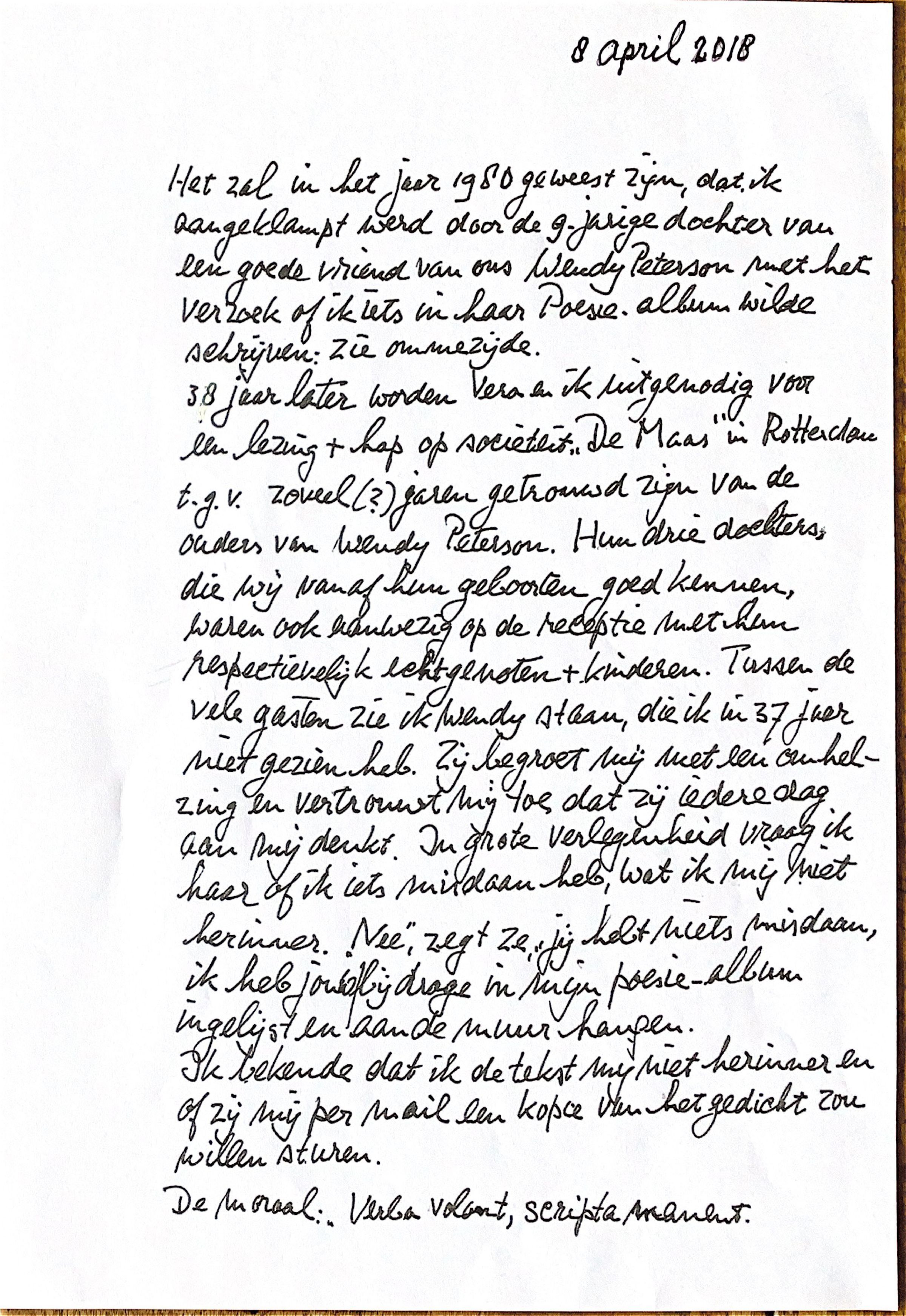 2018-04-08 Gedichtje in het poesie-album van Wendy Peterson.