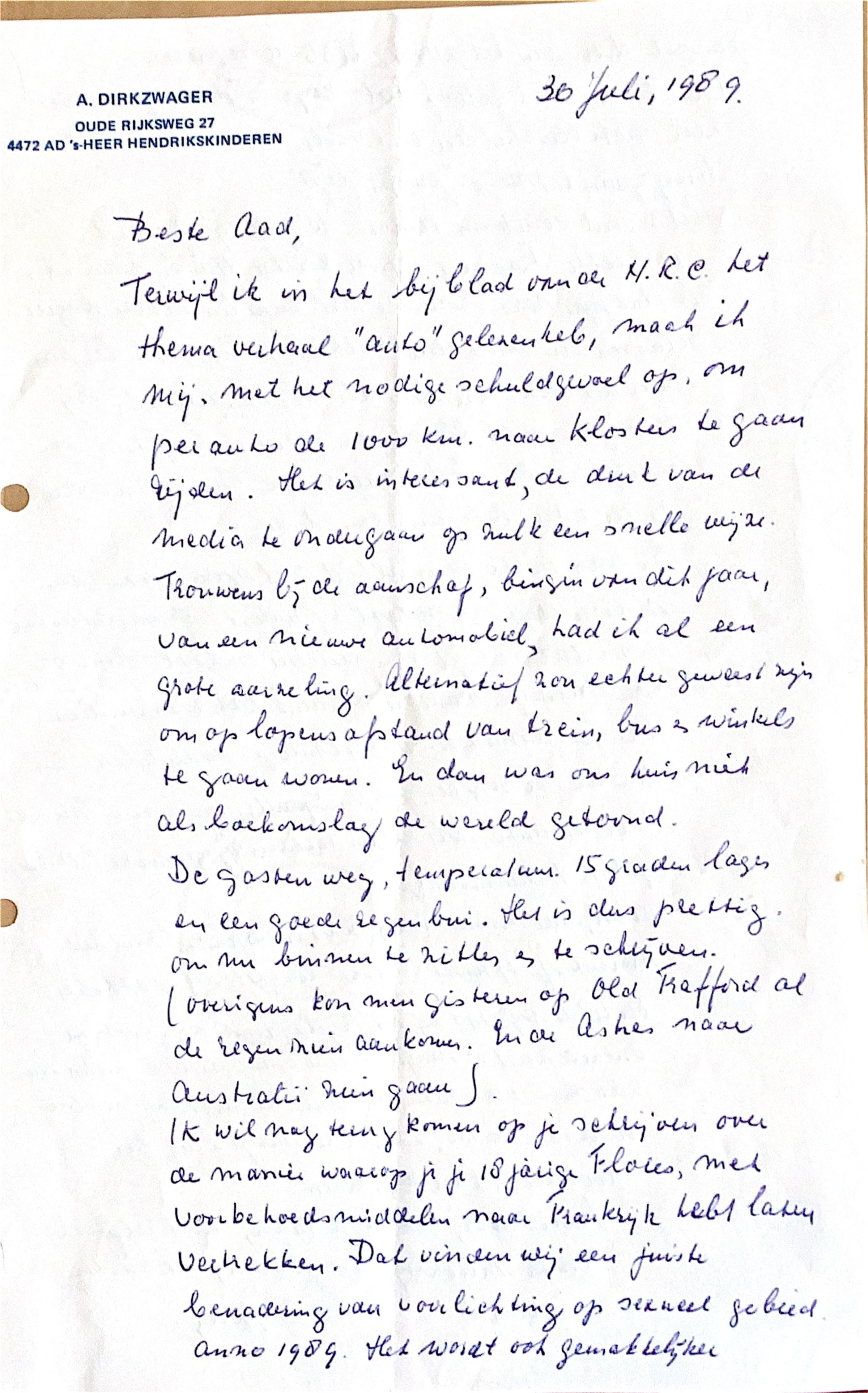 Ik wil nog terugkomen op je schrijven over de manier, waarop je je 18 jarige Floris, met voorbehoedsmiddelen, naar Frankrijk hebt laten vertrekken. Dat vinden wij een juiste benadering van voorlichting op seksueel gebied anno 1989.