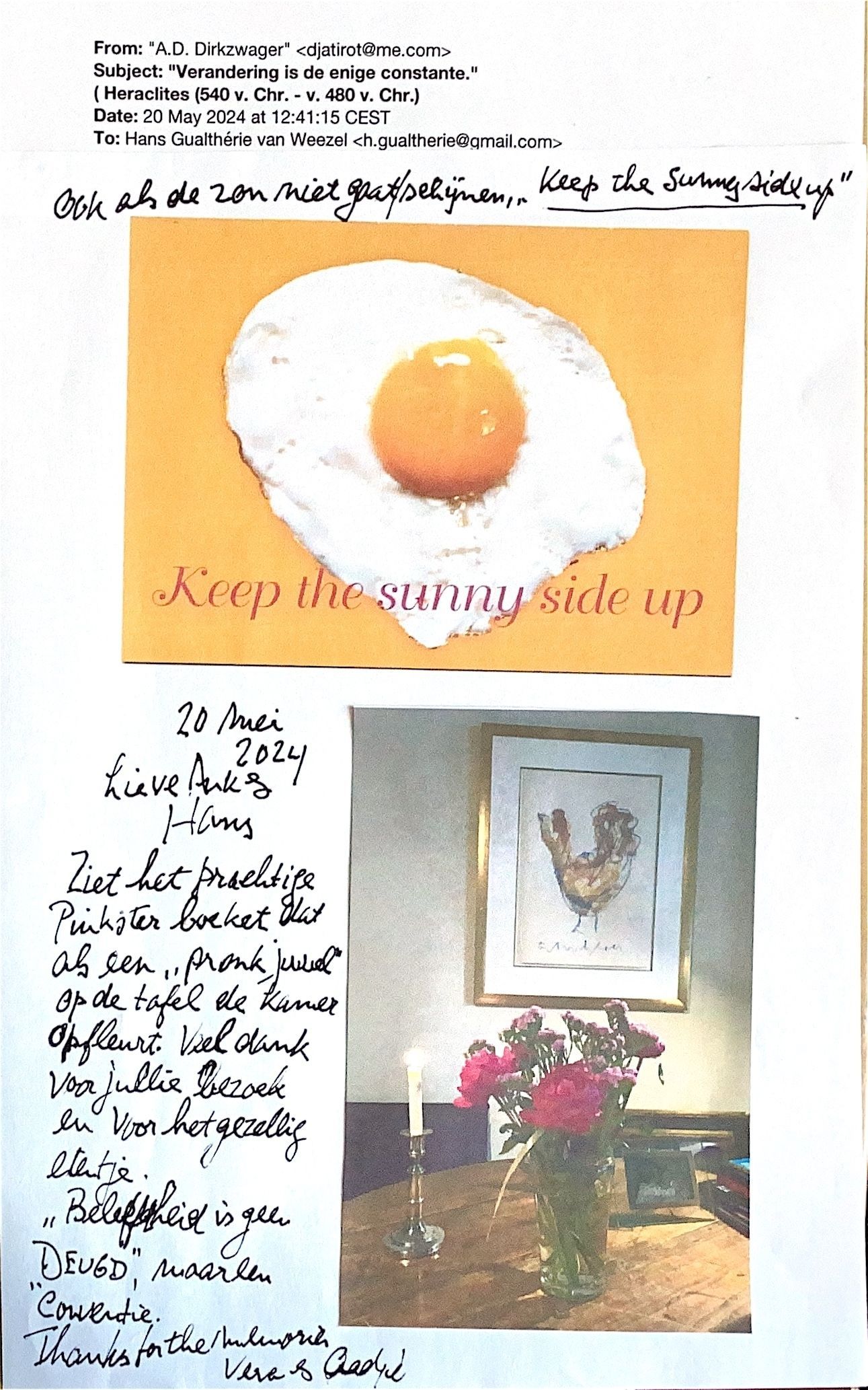 Ook als de zon niet schijnt, "keep the sunny side up."