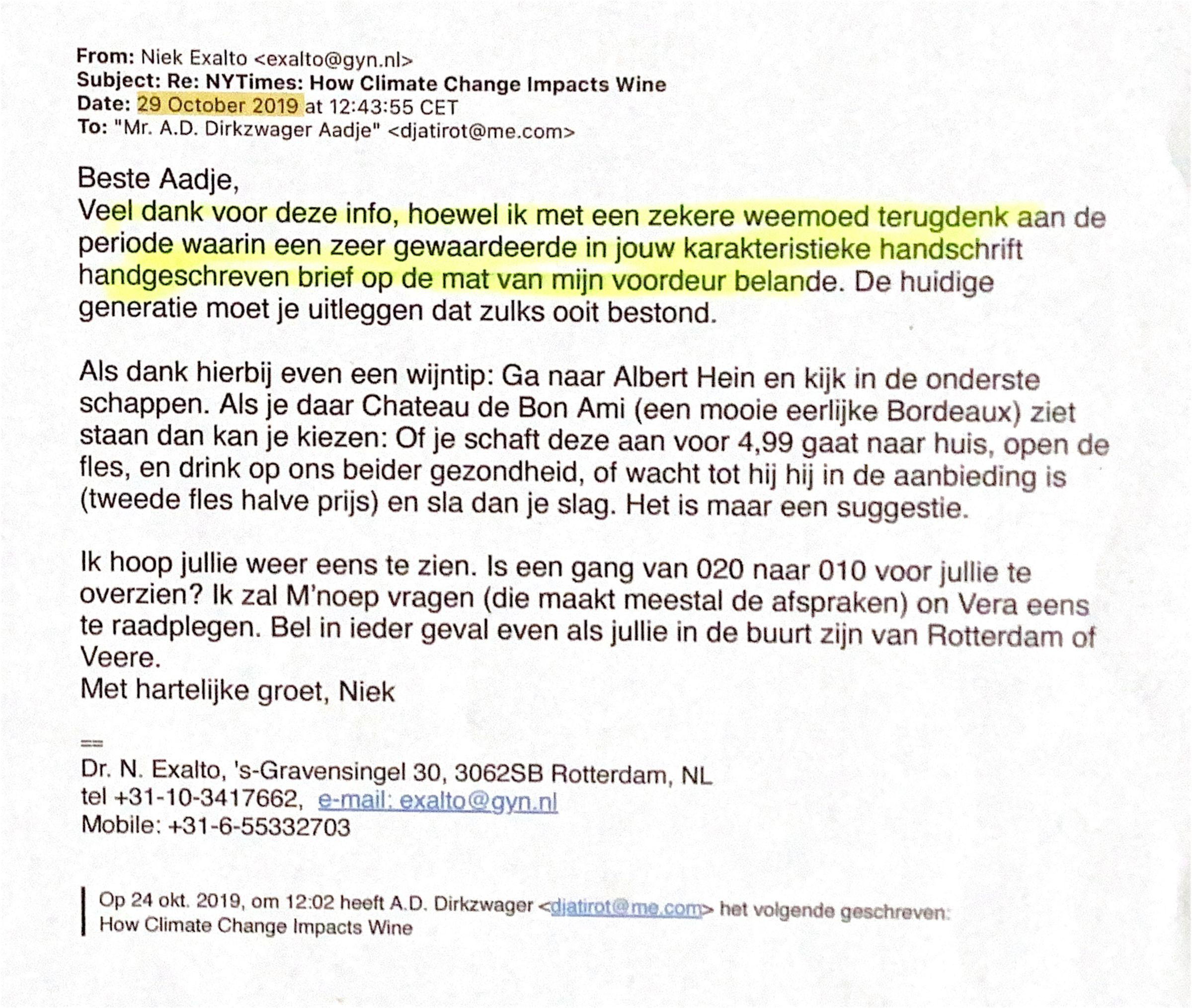 veel dank voor deze info, hoewel ik met een zeker weemoed terugdenk aan de periode, waarin een zeer gewaardeerde, in jouw karakteristieke handschrift, handgeschreven brief op de mat van mijn voordeur belandde. De huidige generatie moet je uitleggen dat zoiets bestond.