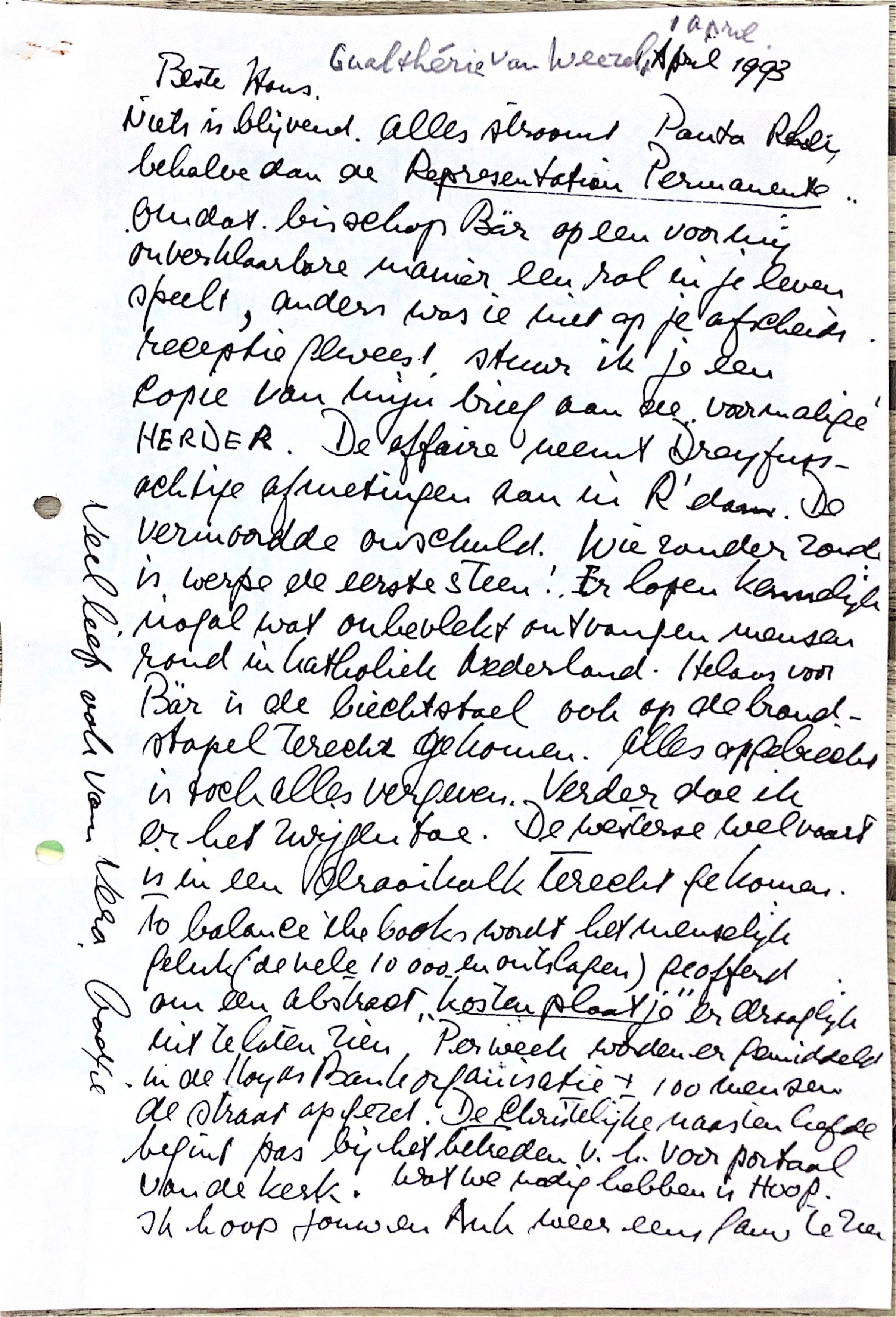 Omdat Bisschop Bär op een voor mij onverklaarbare manier een rol in je leven speelt, anders was ie niet op je afscheidsreceptie geweest, stuur ik je een kopie van mijn brief aan de voormalige HERDER. De affaire neemt Dreyfuss-achtige afmetingen aan.in Rotterdam; De vermoorde onschuld. "Wie zonder zonde is, werpe de eerste steen."