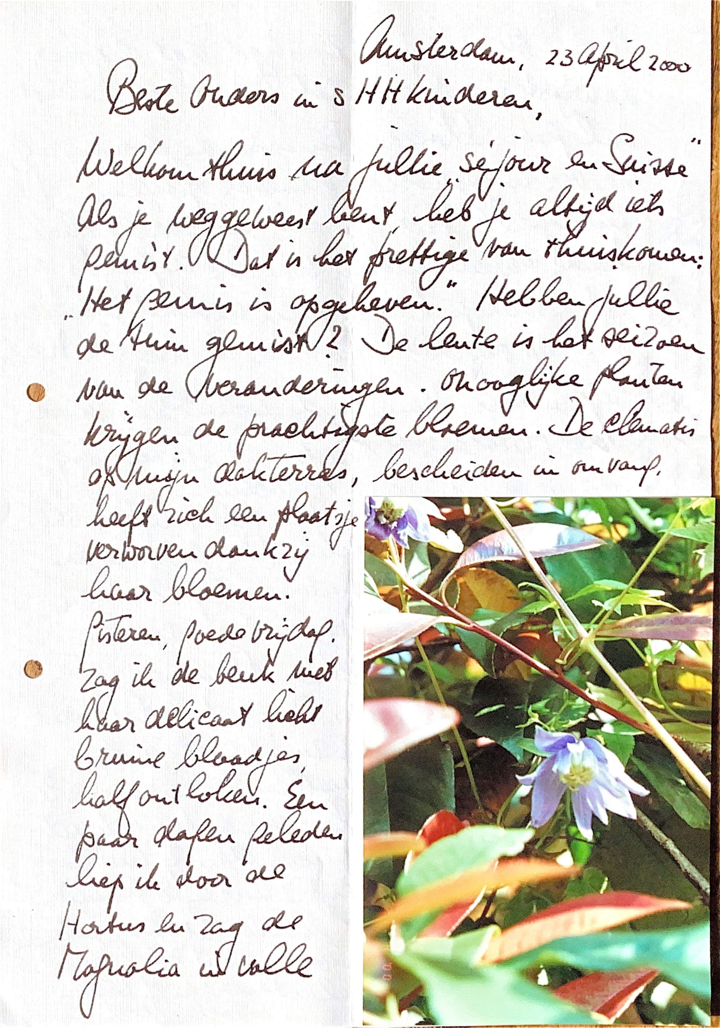 De lente is het seizoen van de veranderingen. Onoogelijke planten krijgen de prachtigste bloemen. De clematis op het dakterras, bescheiden in omvang, heeft zich daar een plaatsje verworven dankzij haar bloemen. Gisteren, Goede vrijdag, zag ik de beuk , in de achtertuin van het belendend perceel, met haar half ontloken, delicate, lichtbruine blaadjes. Een paar dagen geleden liep ik door de Hortus en zag de Magnolia in volle bloei.