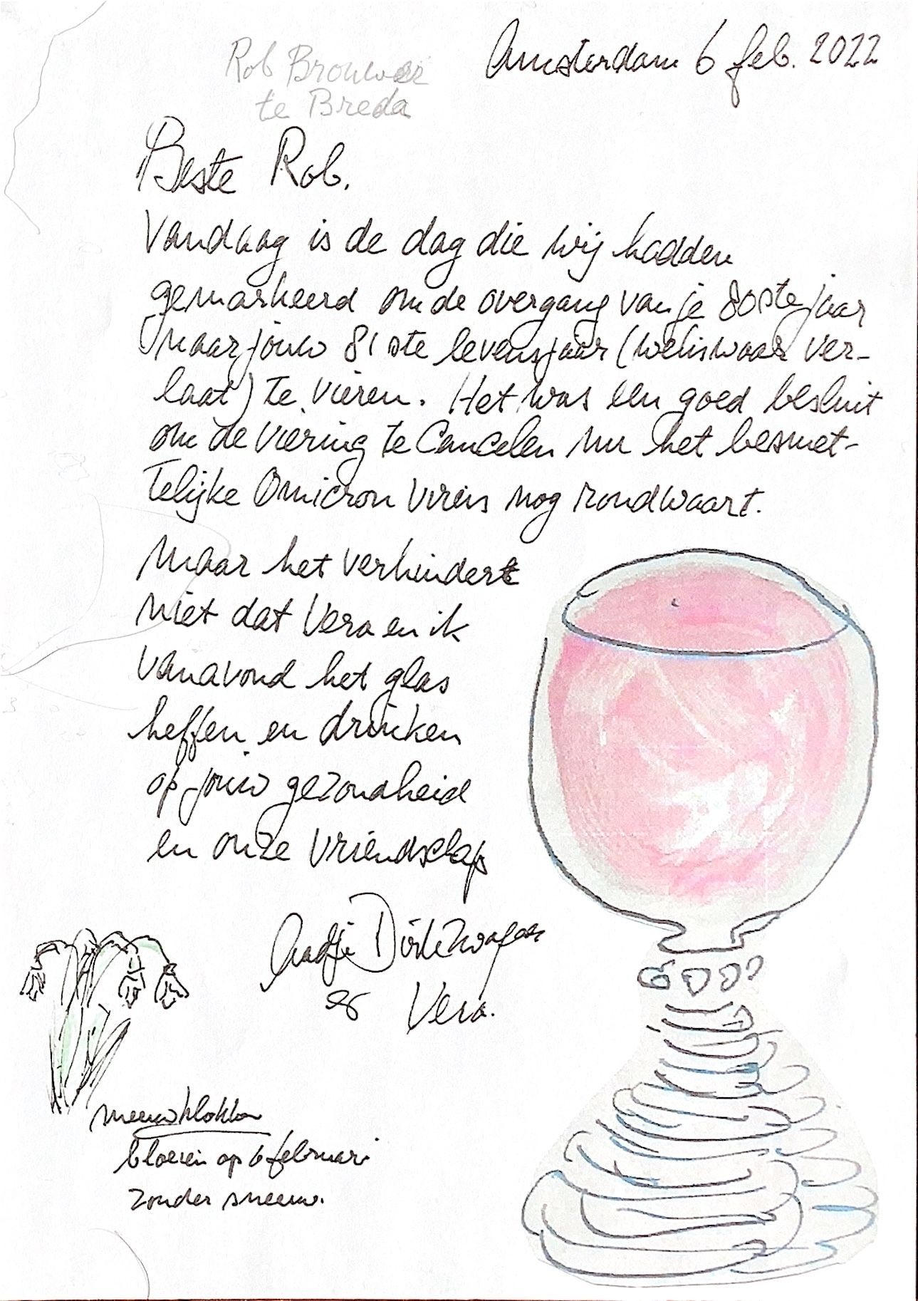 vandaag is de dag, die wij hadden gemarkeerd om de overgang van je 80ste jaar naar jouw 81ste levensjaar (weliswaar verlaat) te vieren. Het was een goed besluit om de viering te cancelen, nu het besmettelijke omicron virus nog rondwaart.