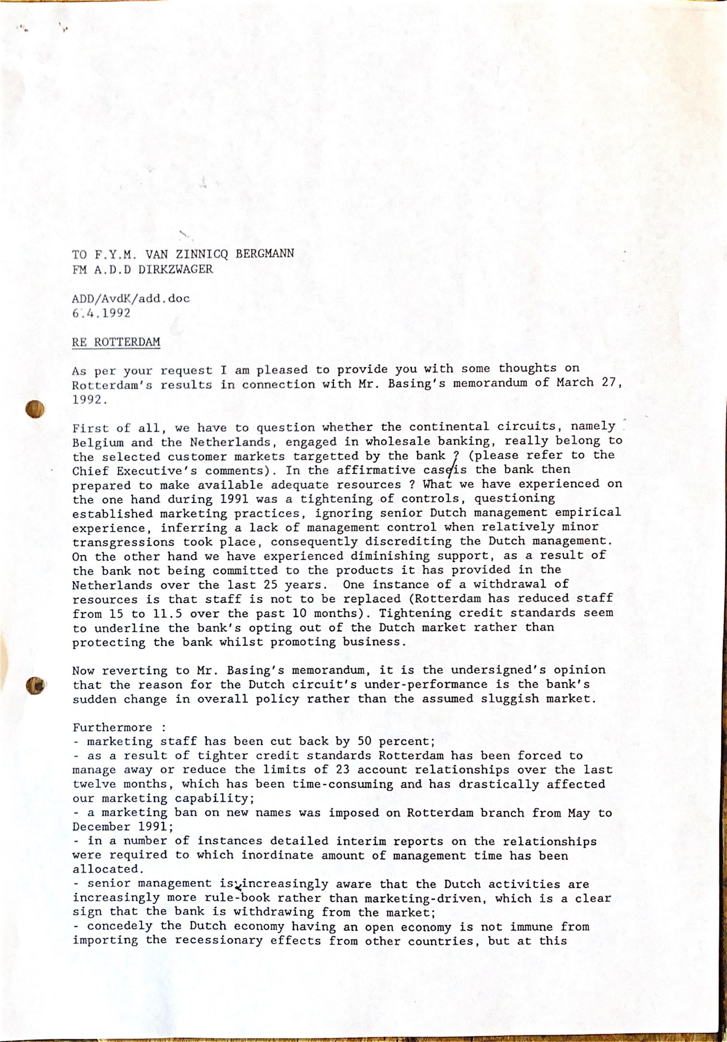 1992-04-06 Verslag performance Rotterdam branch Lloydsbank.