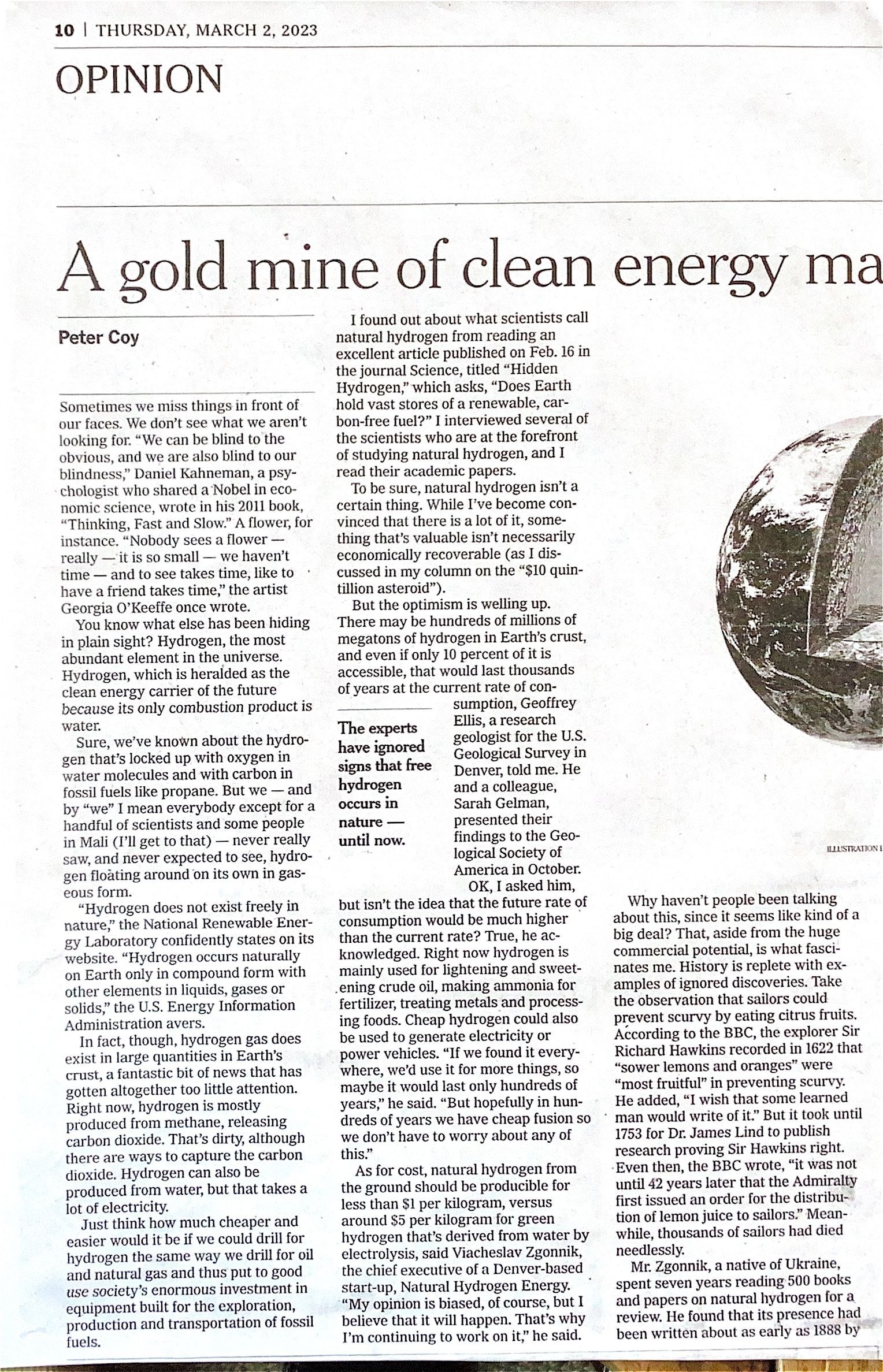 2023-03-02 Article about hydrogyn in the NYT INT d.d . March 2 2023.