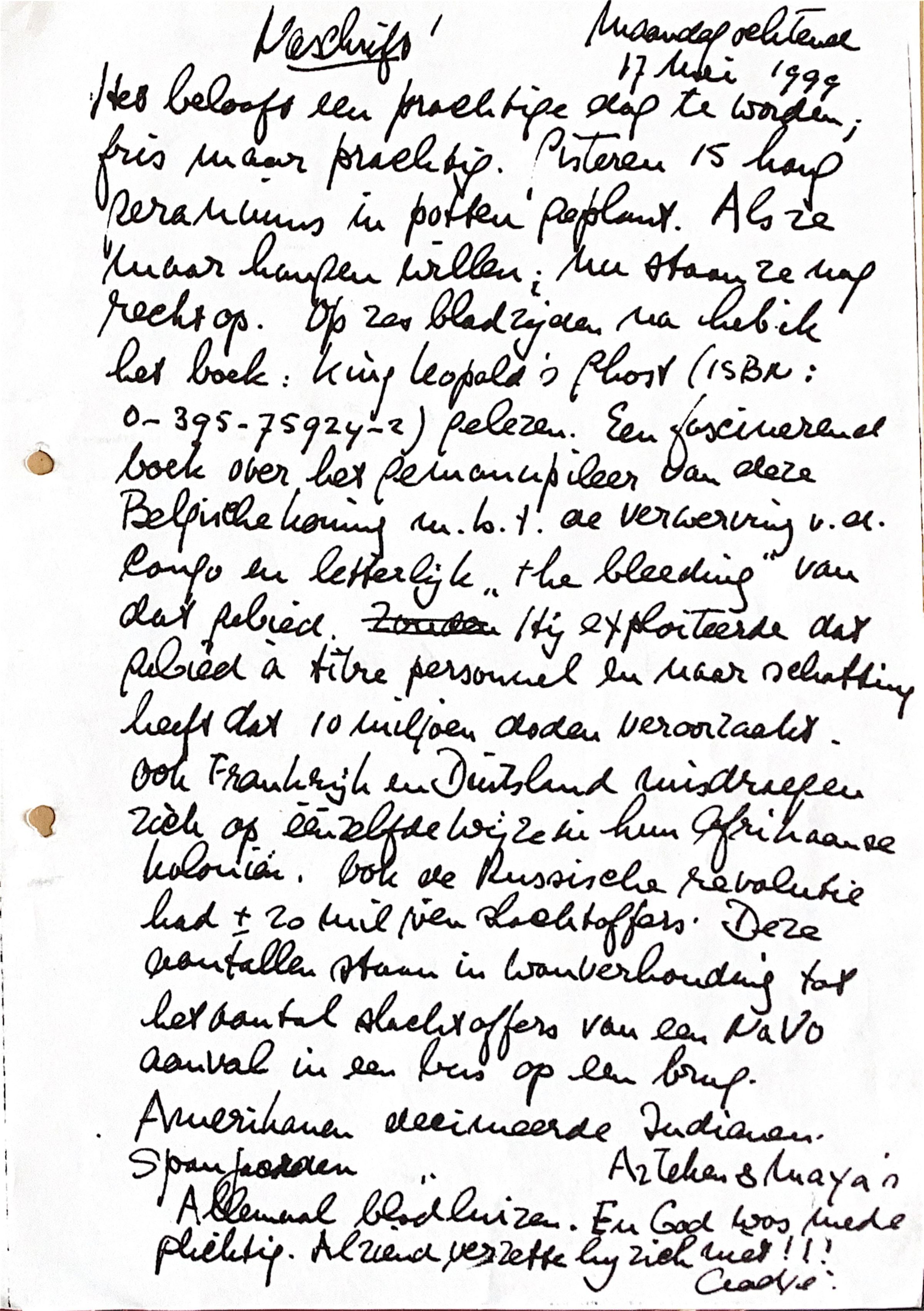 Naschrift behorende bij de brief s.s.15 mei 1999 aan Ank & Hans G.v.W.