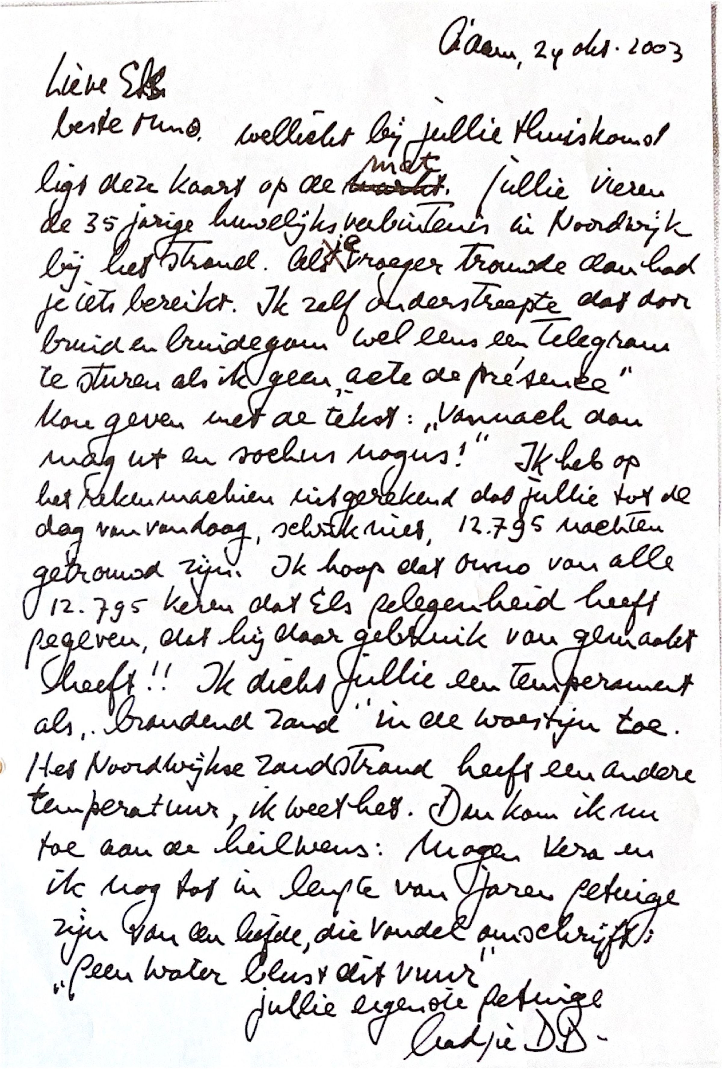 Jullie vieren de 35 jaar huwelijksverbintenis in Noordwijk bij het strand. Als je vroeger trouwde dan had je iets bereikt. Ik onderstreepte dat door de bruid en bruidegom wel eens een telegram te sturen als ik geen 'acte de présence' bij de huwelijksvoltrekking met de tekst: