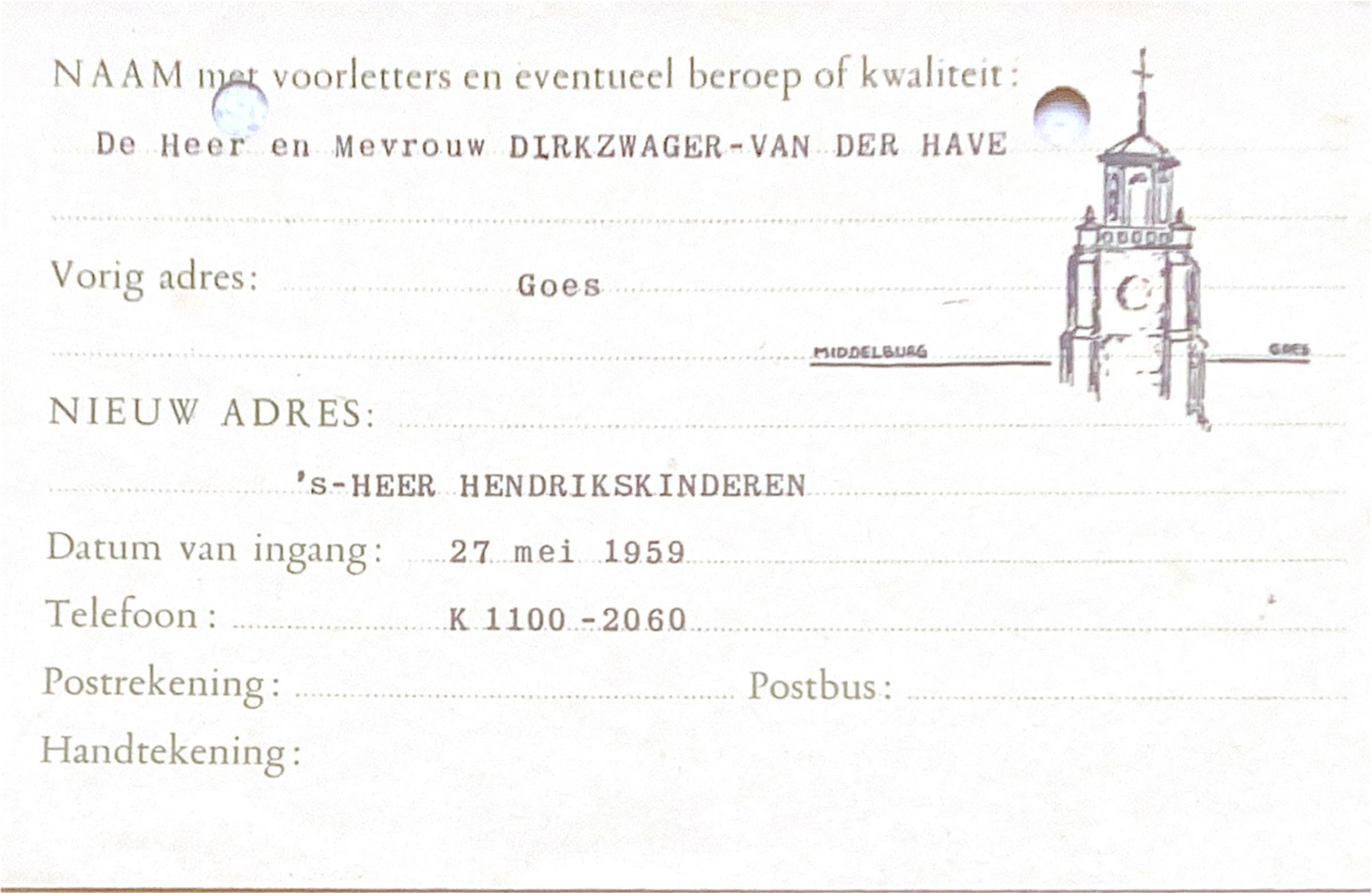 De Heer en Mevrouw Dirkzwager-van der Have verhuizen naar hun nieuwe adres in sHeerHendrikskinderen.