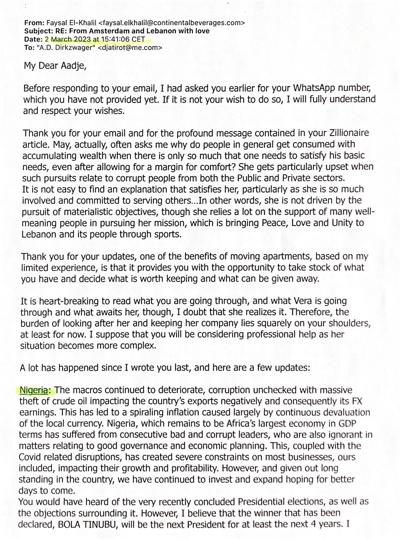 2023-03-02 Mail from Faysa El-Khalil from Lbznon.