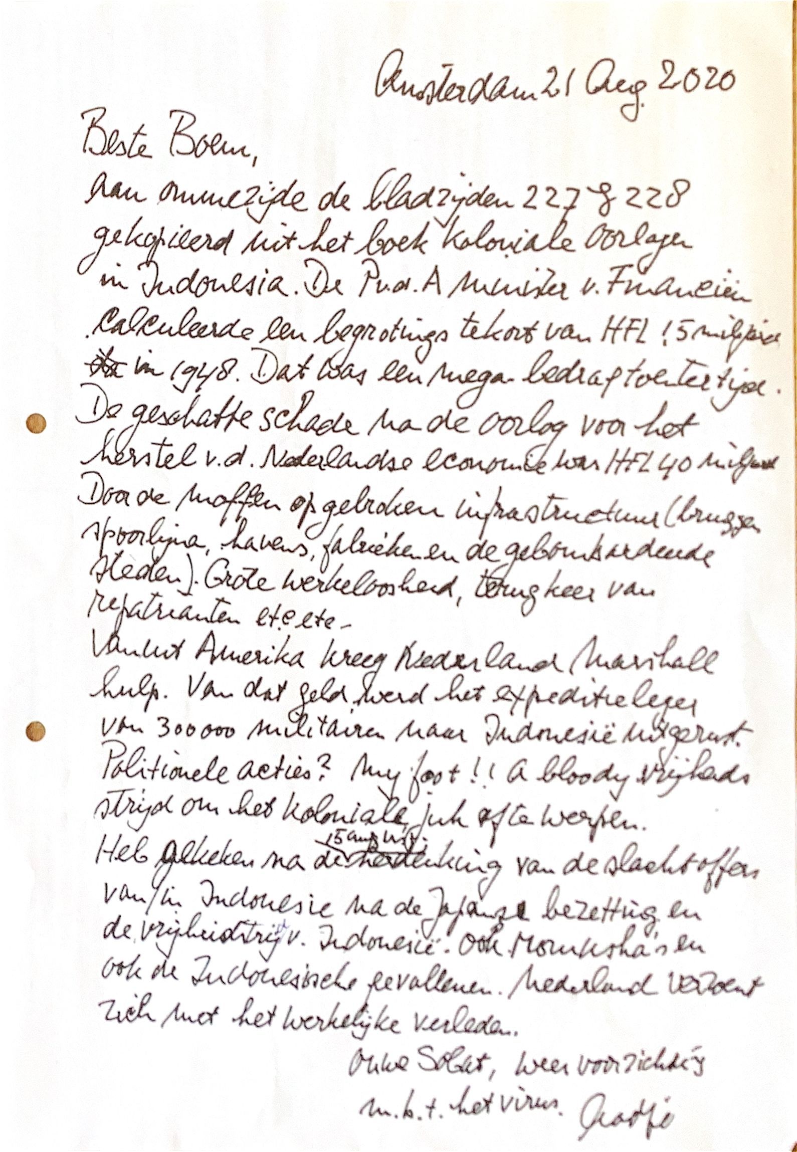 Vanuit Amerika kreeg Nederland Marshall hulp. Van dat geld werd het expeditieleger van 300.000 militairen naar Indonesië uitgerust. Politionele acties in Indië ? 'My foot !' 'A bloody' vrijheidsstrijd om het koloniale juk af te werpen.