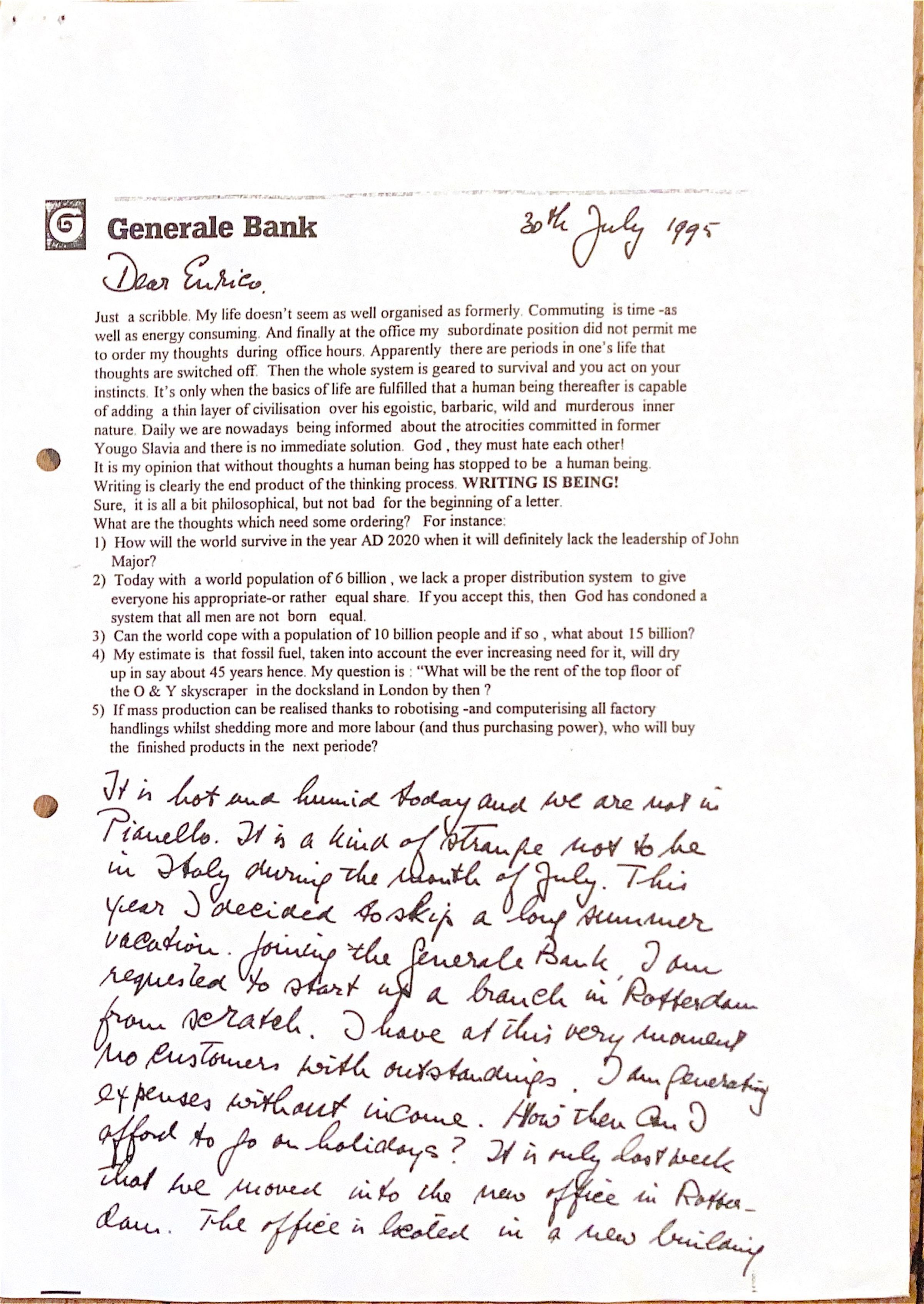 Last May I joined the Belgian General Bank and was asked to start up the branch in Rotterdam from scratch. The branch has no customers yet. I only incur costs without income. How can I afford to go on holiday?