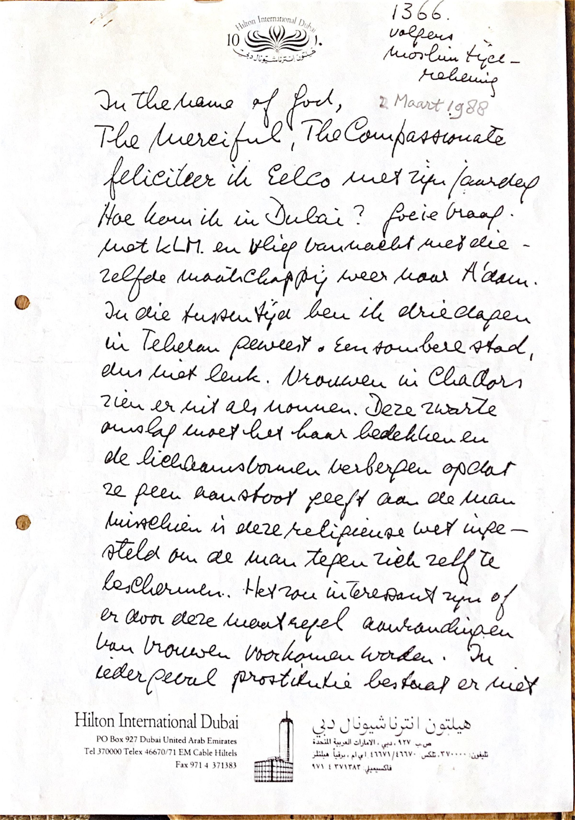 Hilton Hotel Dubai, 2 maart 1988