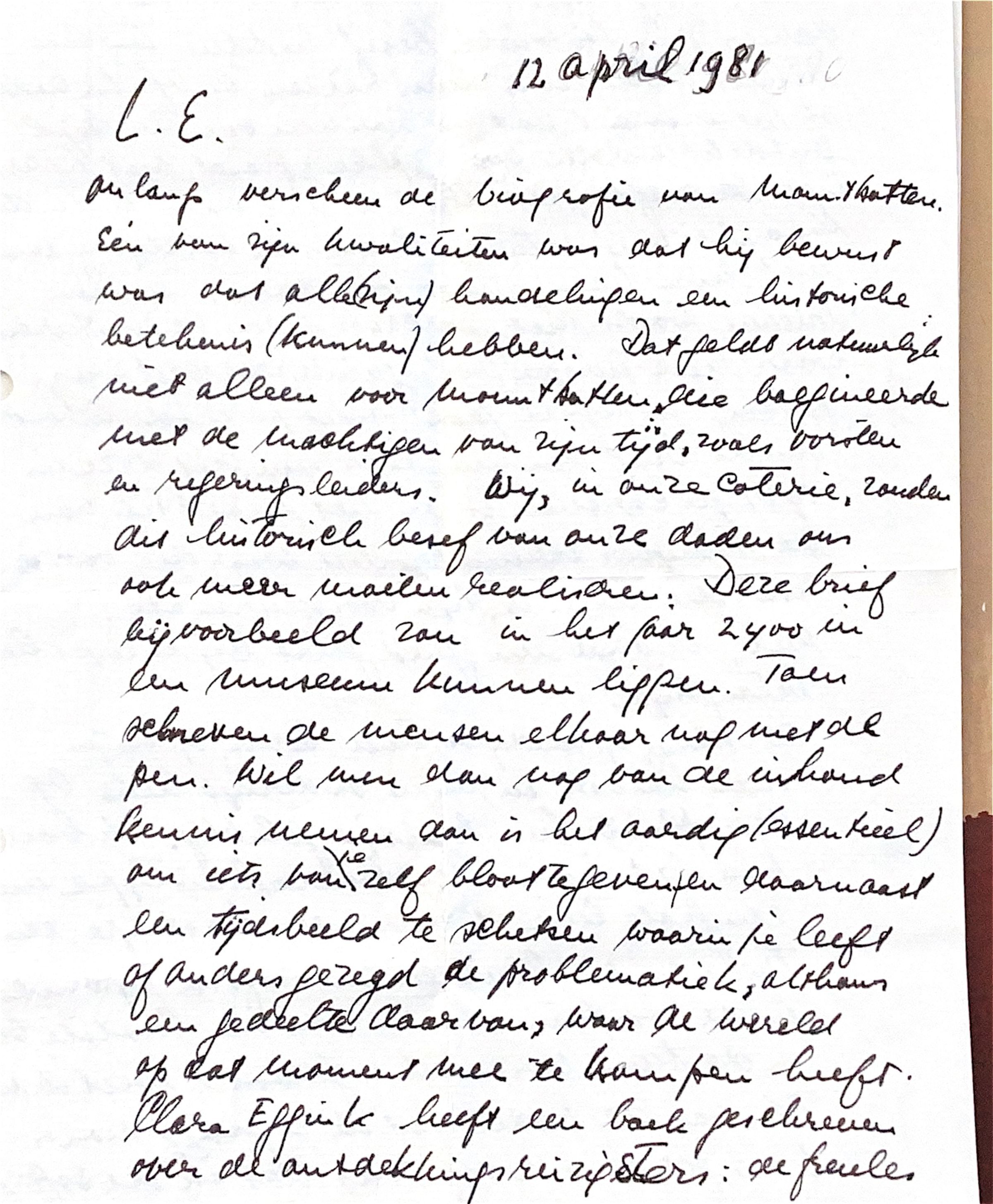 Kortom, na zoveel jaar moet je uit de inhoud van deze brief kunnen begrijpen, dat die in 1981 is geschreven en het moet iets van de schrijver onthullen: b.v. Waar die voor-en waar die tegen is, zijn voorkeuren etc. Wel, ik vind een goed gebit bij meisjes heel belangrijk !