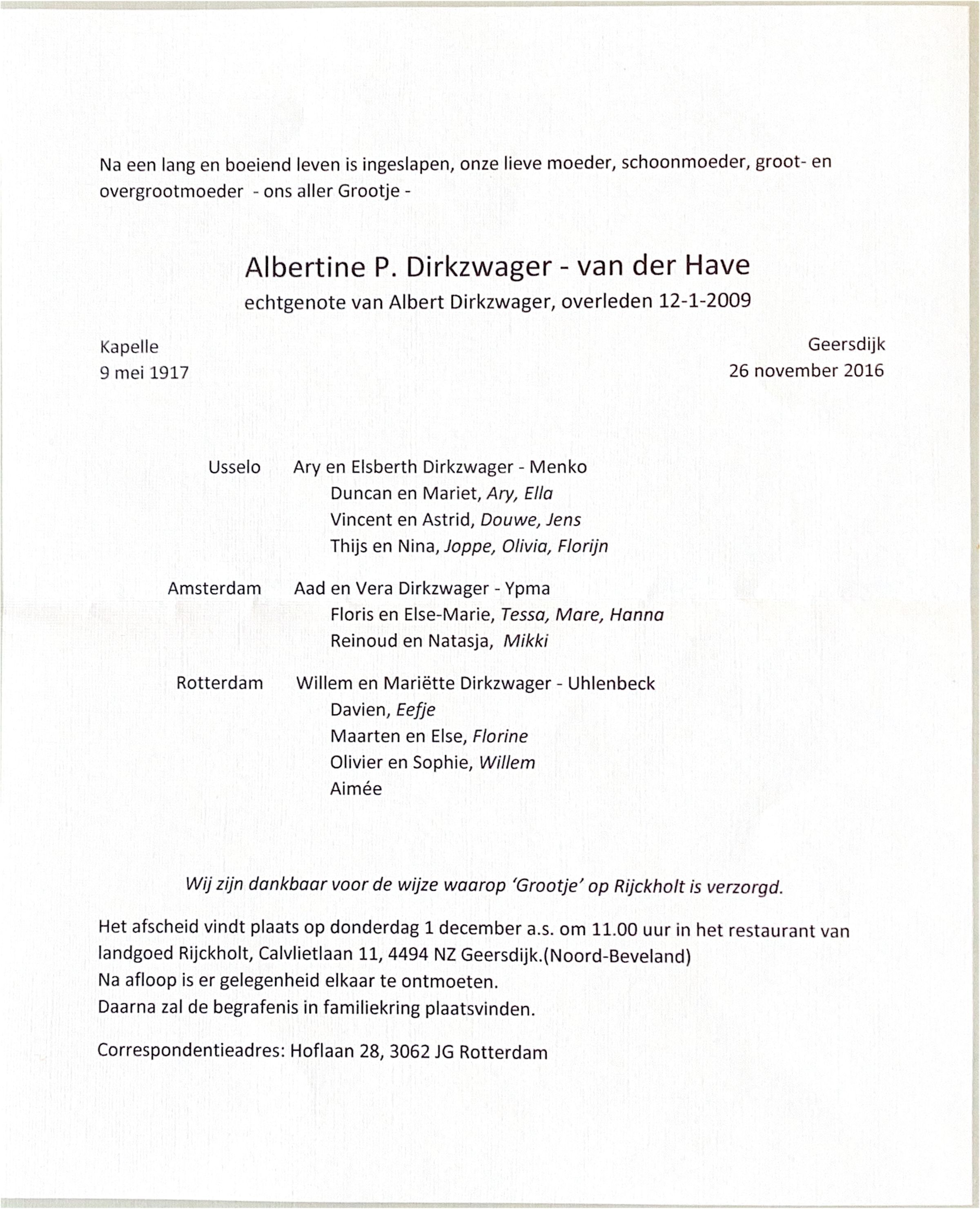 2016-11-26 Rouwannonce van Albertine Dirkzwager-Ypma.