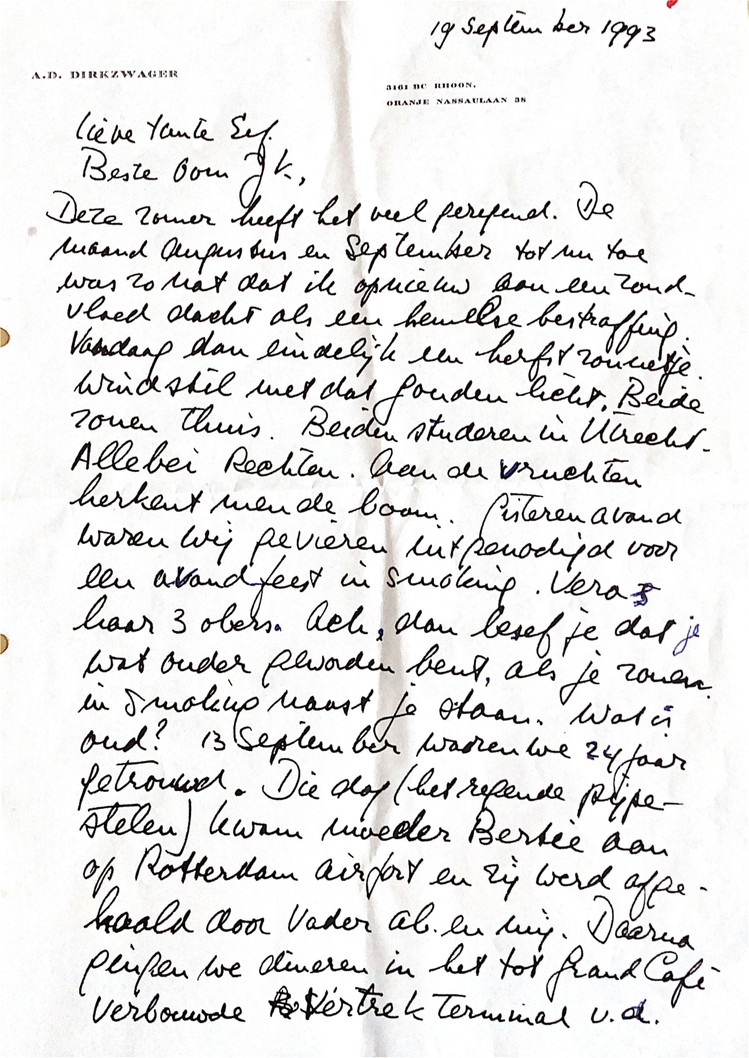 13 september j.l. waren we 24 jaar getrouwd. Die dag (het regende weer pijpenstelen) kwam moeder Bertie aan op Rotterdam-airport en vader Ab en ik hebben haar daar opgewacht. Daarna zijn we gaan dineren in het tot Grand Café verbouwde vertrekhal van de Holland Amerika Lijn aan de Wihelminahaven in Rotterdam, waar Vera zich bij het gezelschap aansloot. Vader (78 jaar) en moeder waren op de 13de september 56 jaar getrouwd. Ik vraag mij af of dit natuurlijk is.