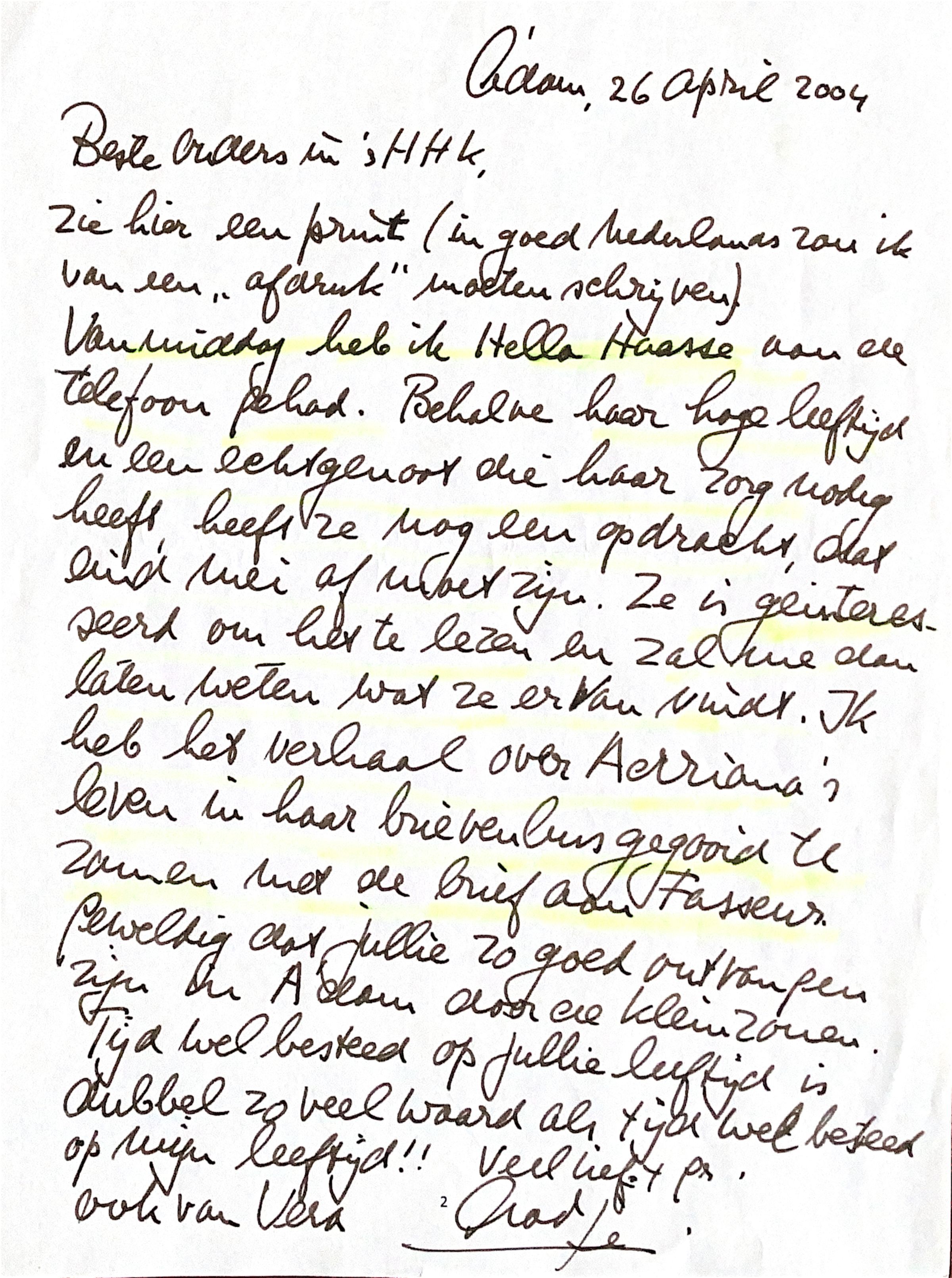 Veel liefs + Groeten, ook van Vera, Aadje