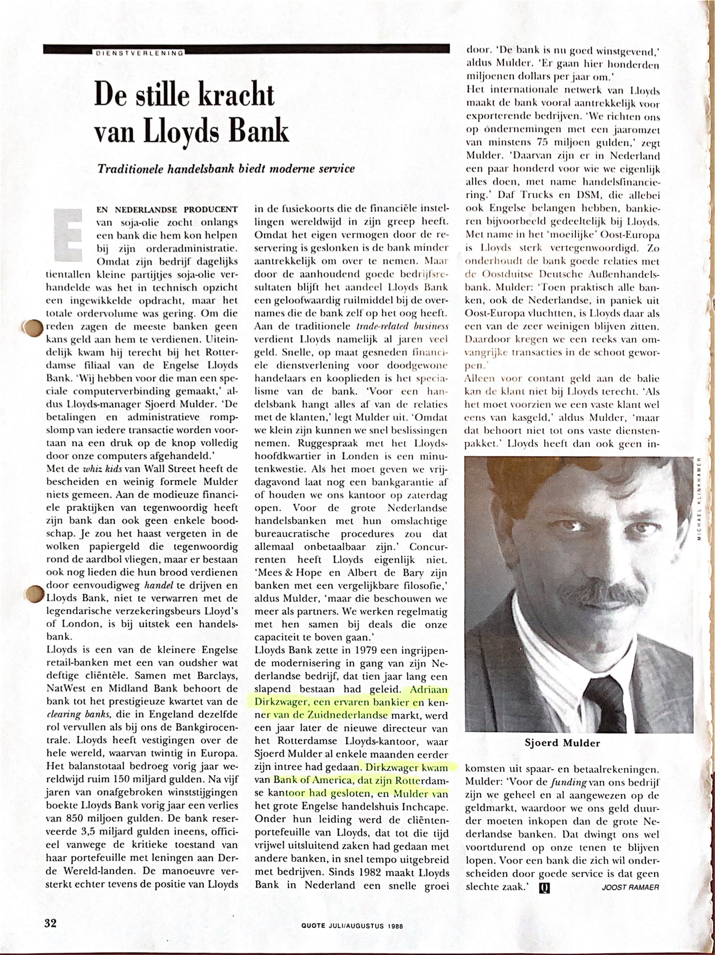 1988-07-15 Artikel over Lloyds Bank Rotterdam in Tijdschrift Quote.