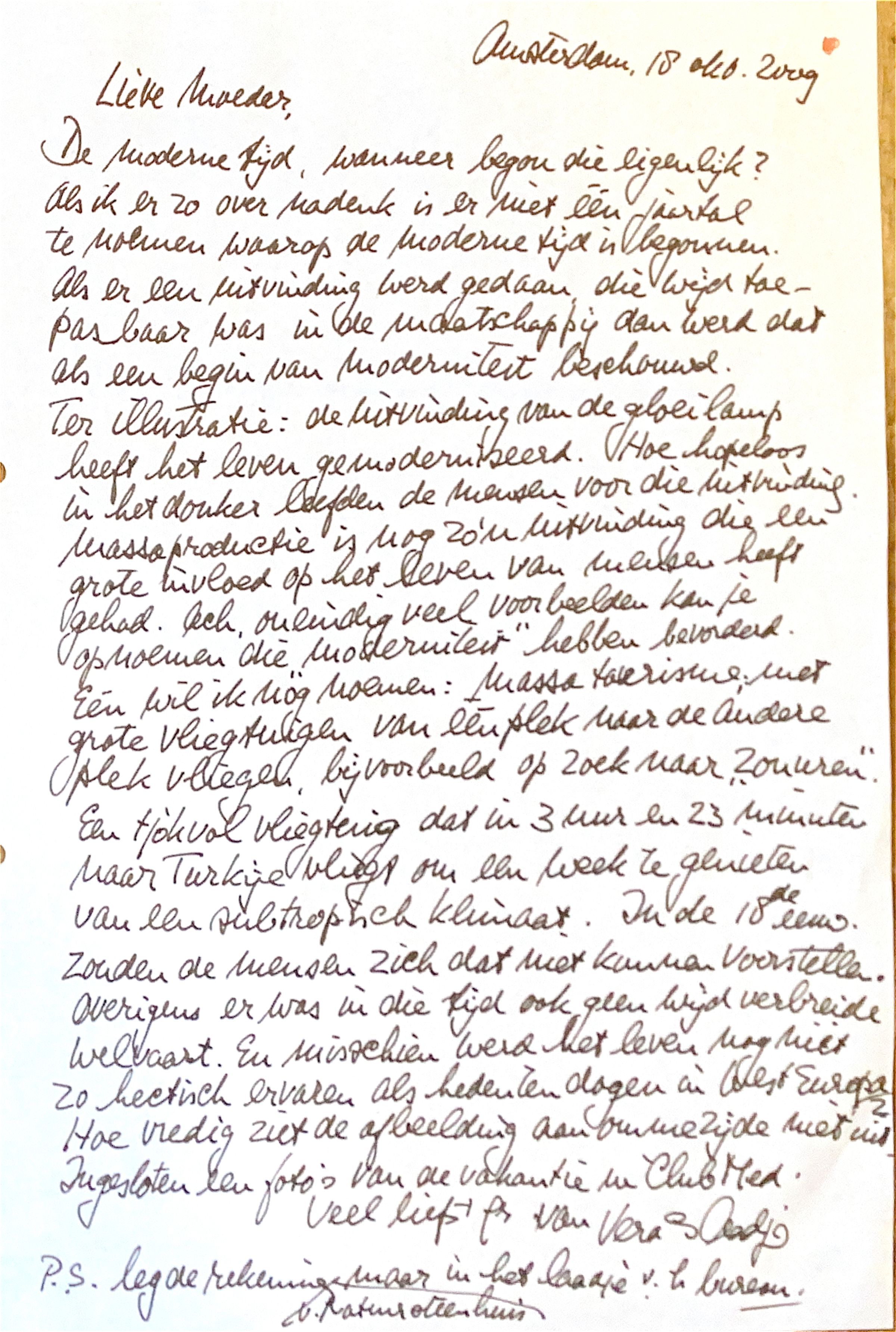 Ingesloten bij deze brief foto's van de vakantie in Club Med te Antalya, Turkije.