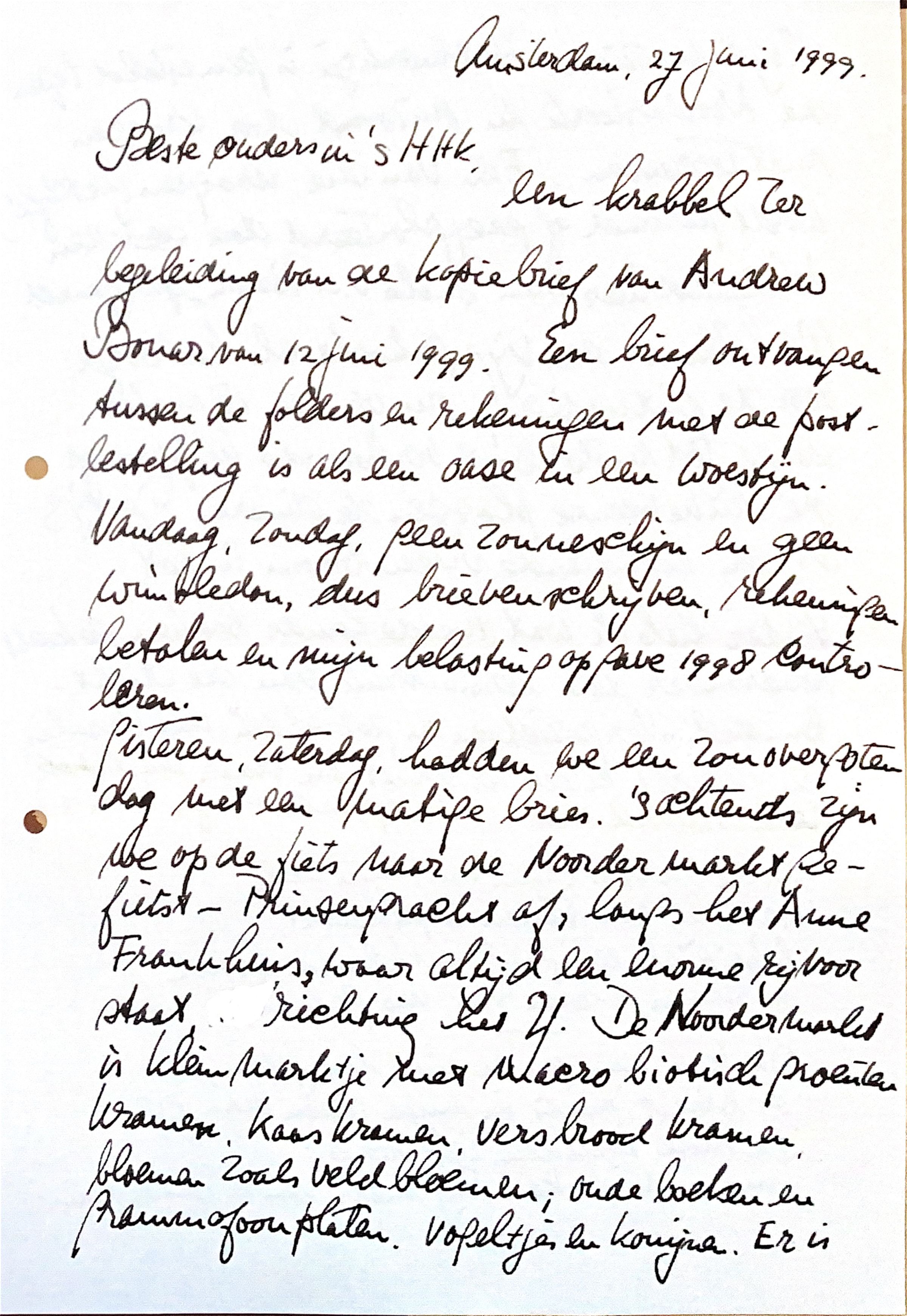 een krabbel ter begeleiding van de kopie brief van Andrew Bonar d.d. 12 juni 1999.