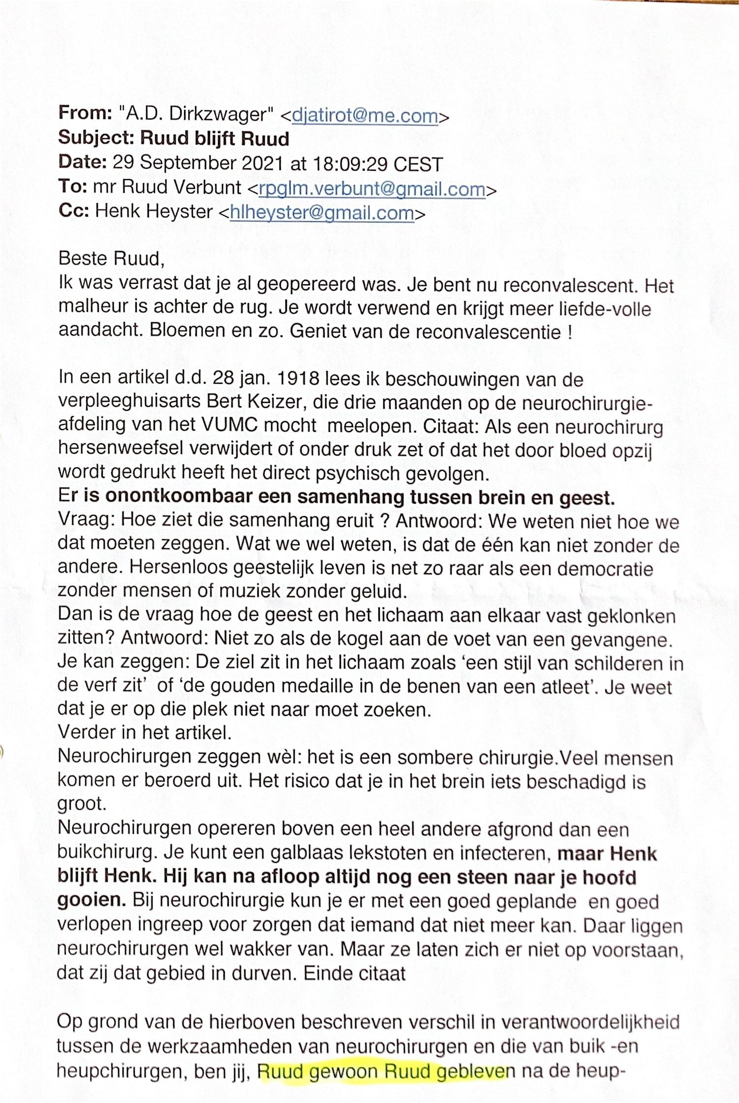 2021-09-29 Mail aan Ruud Verbunt na zijn operatie en kort verslag van de .samenkomst van de jaarclub.