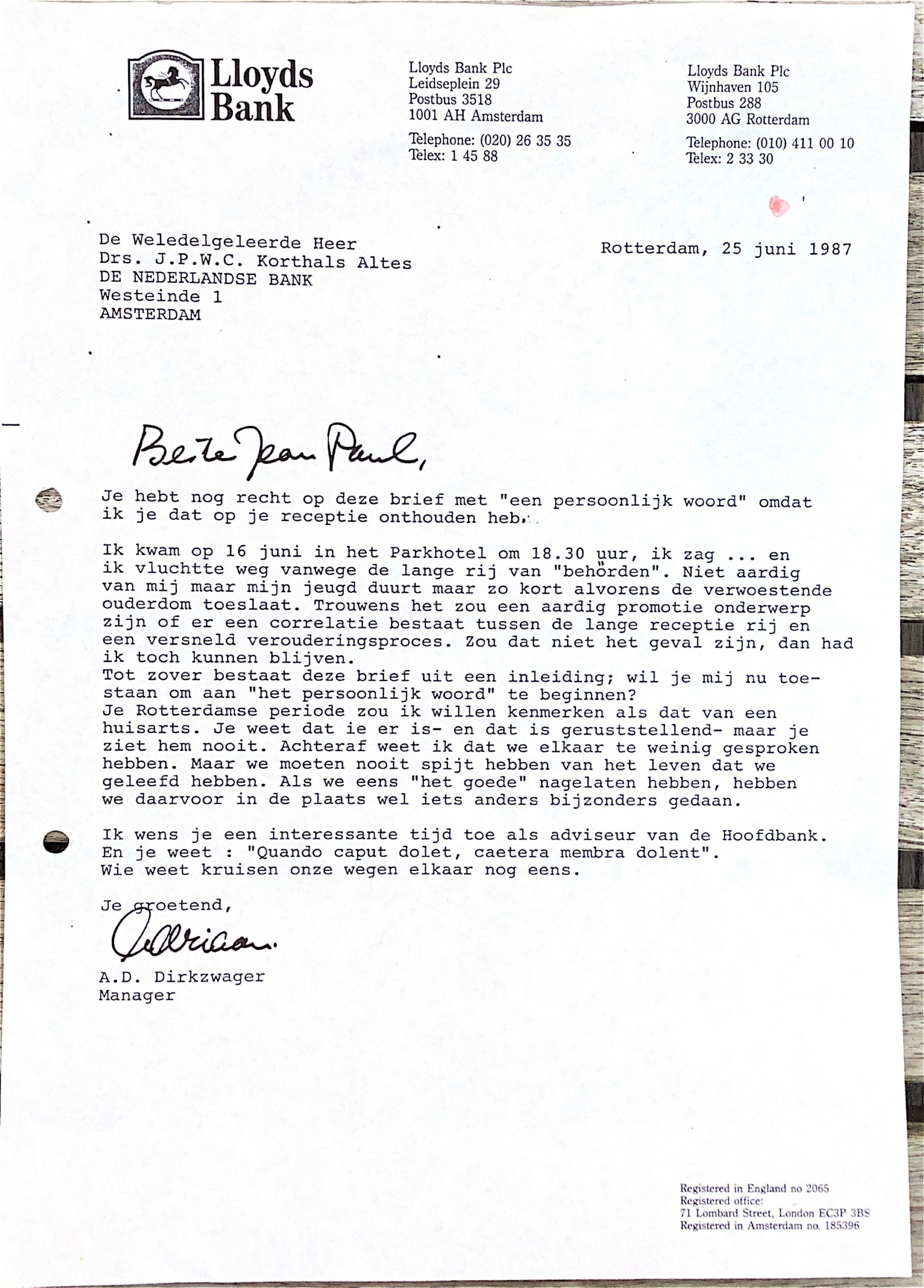 1987-06-25 Afscheid J.P. Korthals bij de Nederlandsche Bank Rotterdam