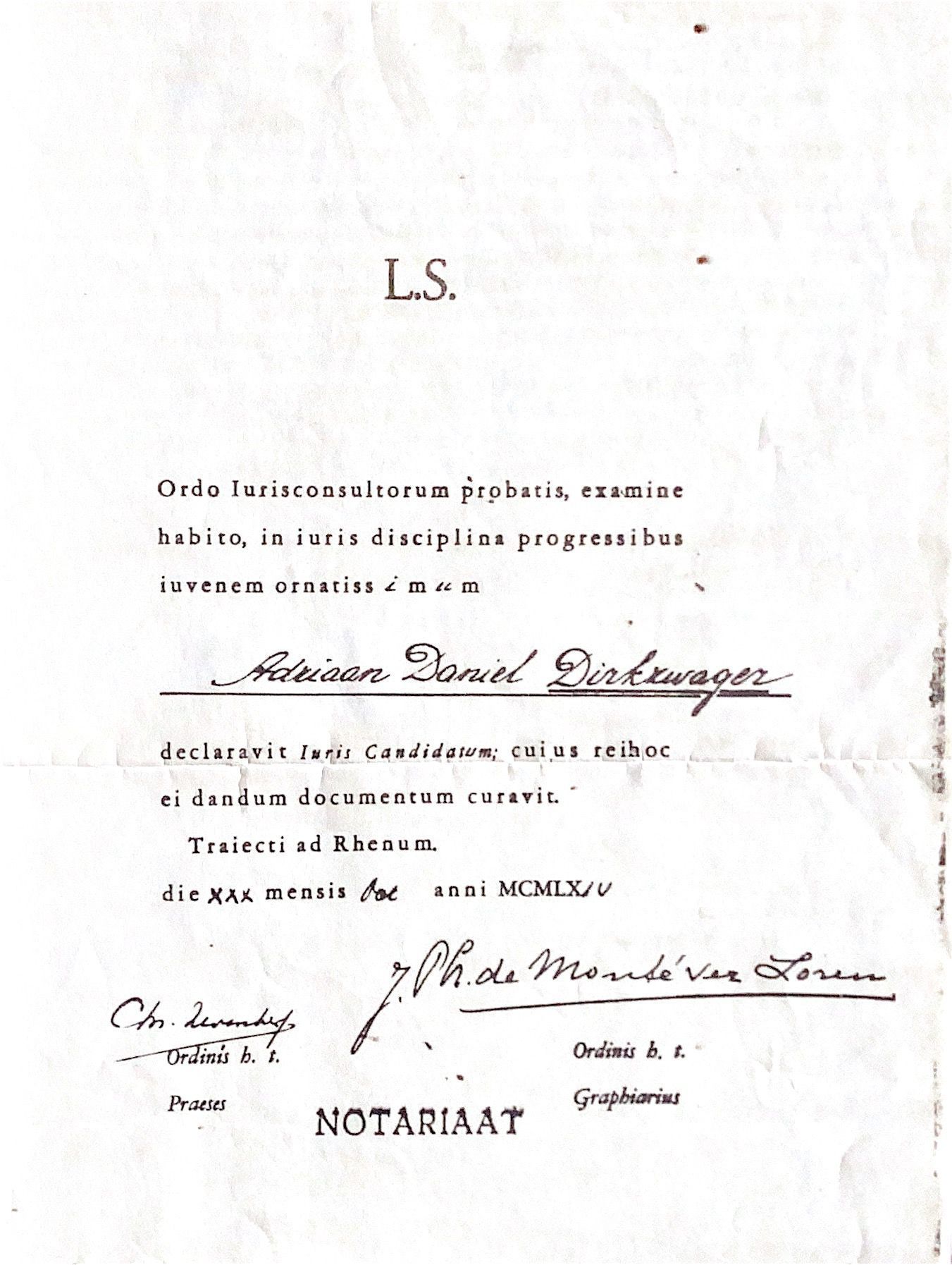 ADD slaagde voor het candidaats examen van de Rechten faculteit, Utrecht