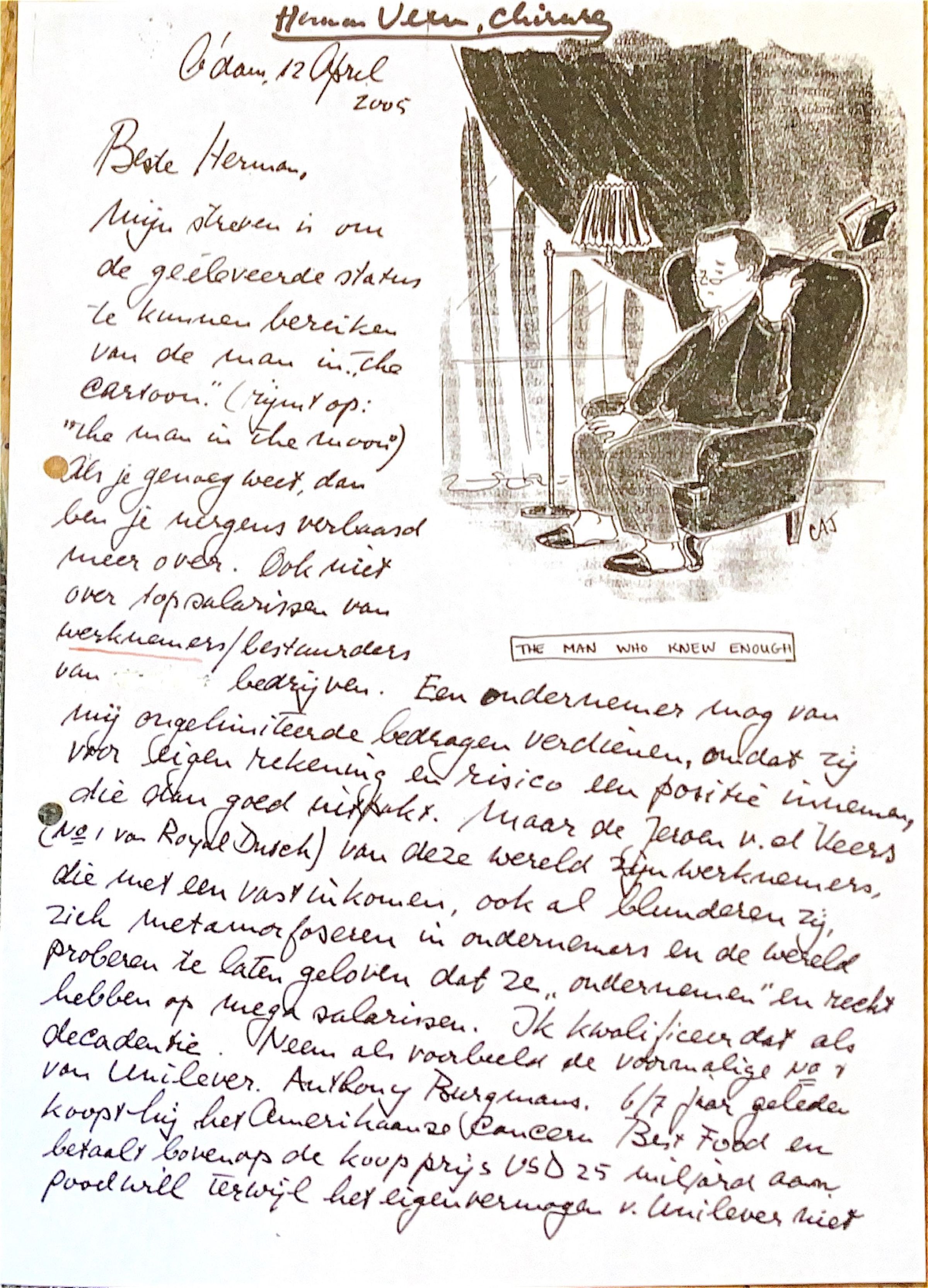 Herman, nogmaals de figuur Burgmans is illustratief voor topmanagers in het Nederlandse bedrijfsleven. De exhibitionistische zelfverrijking (een term van premier Wim Kok) van topmanagers is "de rigueur" heden ten dage. Je mag best een goed salaris verdienen, maar je behoeft niet zoveel te verdienen dat je nakomelingen tot in de zesde graad vrijgesteld zijn van enige arbeidsinspanningen.
