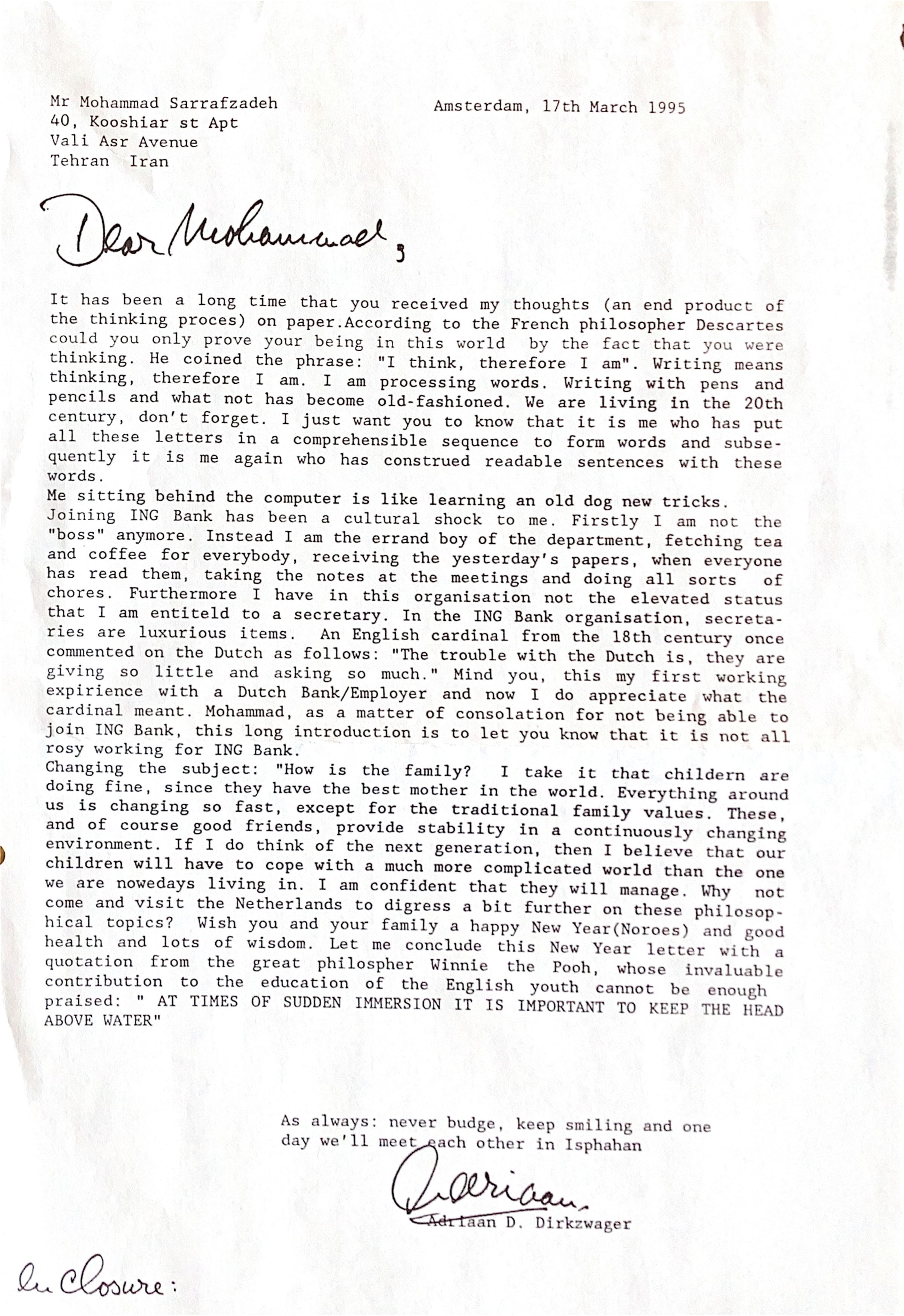 Why not come and visit the Netherlands to digress a bit further on these philosophical topics?