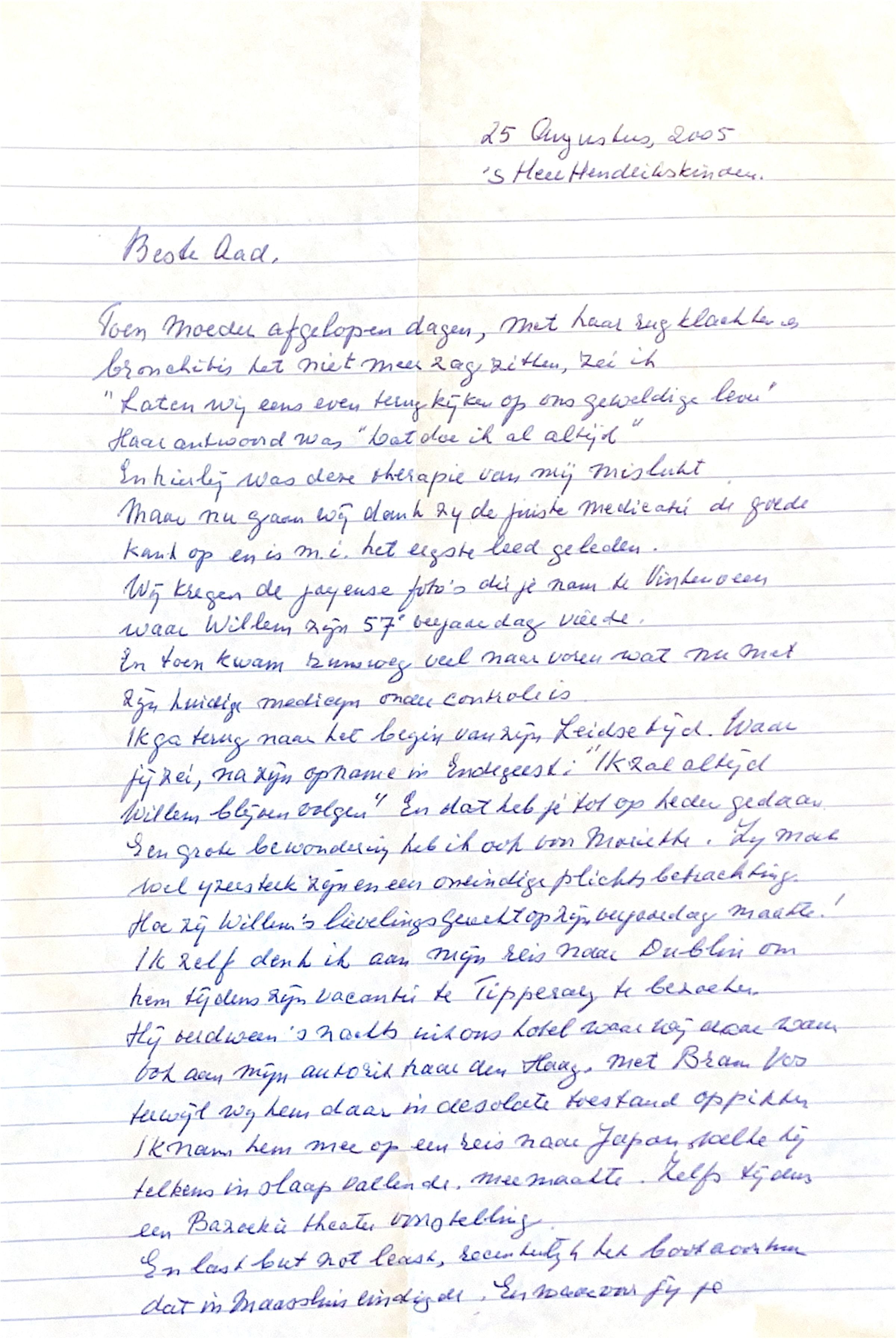 Ik ga terug naar het begin van zijn Leidse tijd, waar jij zei, na zijn opname in Endegeest: "Ik zal altijd Willem blijven volgen." En dat heb je tot op heden gedaan.