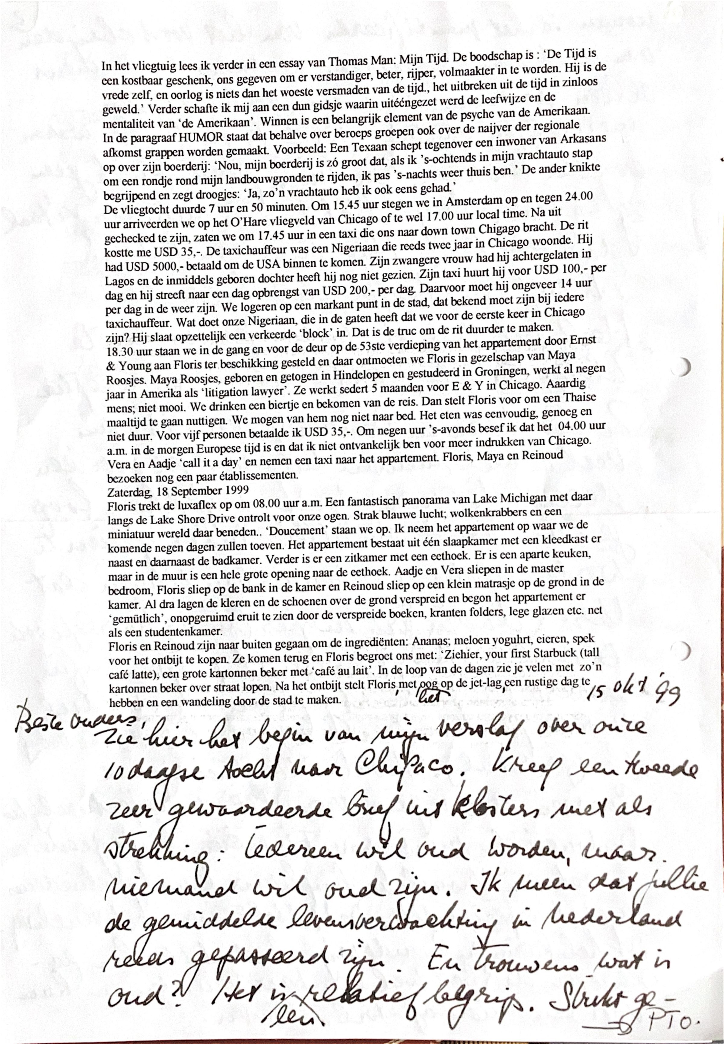 met o.a. de bschrijving v.d. receptie v. Karin en Boudewijn v. Ittersum en begin reisverslag over reis naar Chicago.