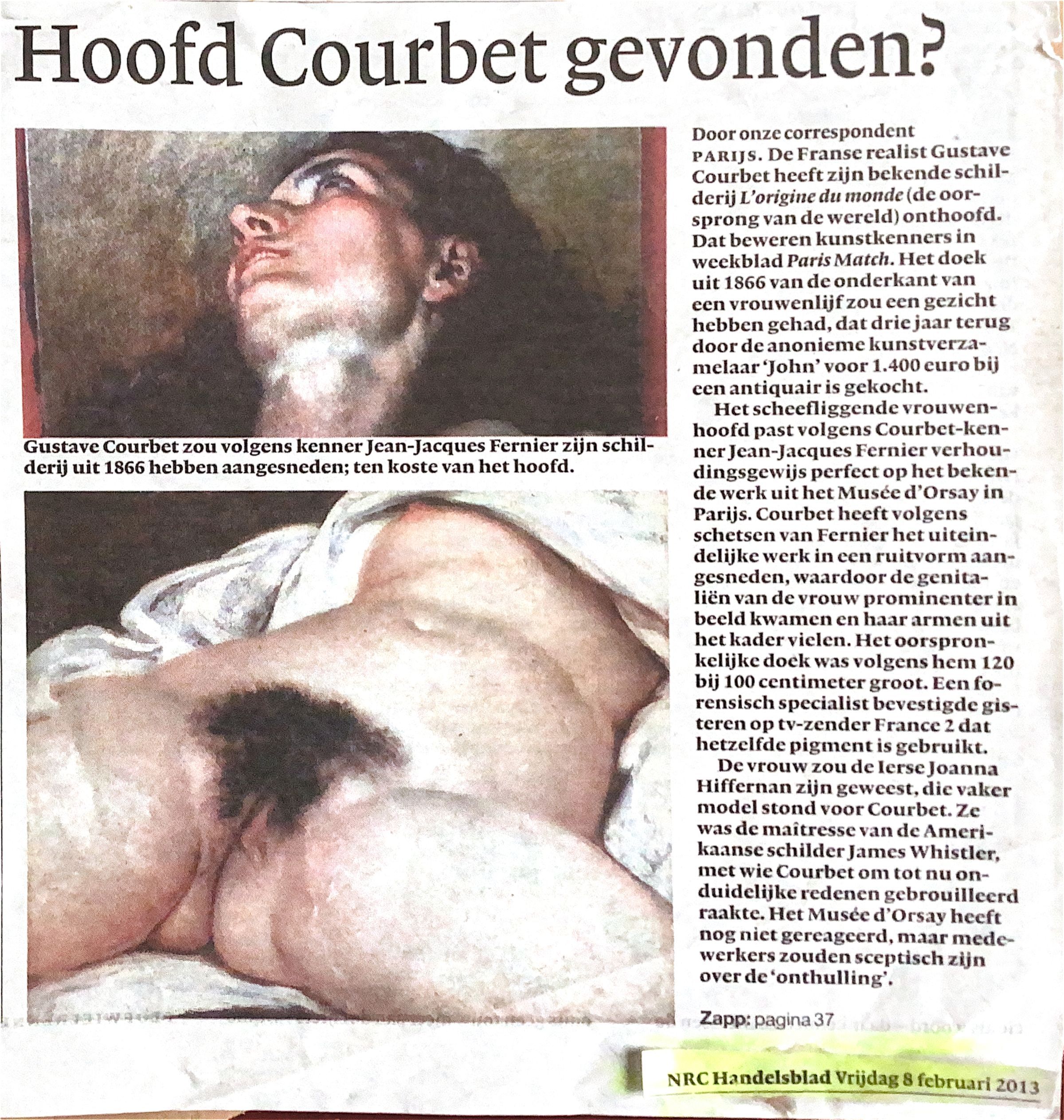 2013-02-8 Het hoofd is gevonden dat hoort bij het lichaam geconterfeit in het schiderij “l’origine du monde” van Courbet.
