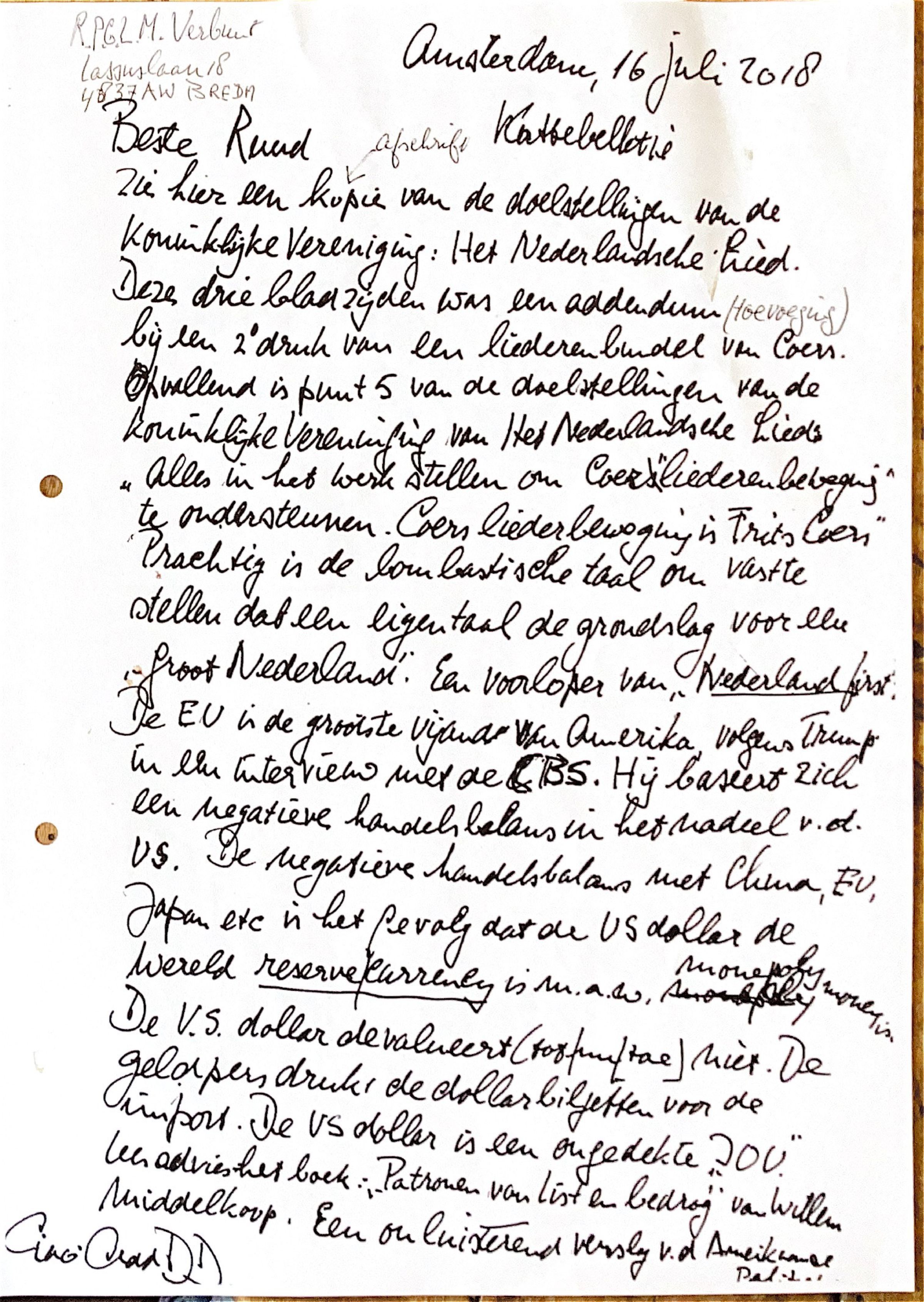 2018-07-16 ADD brief aan Ruud Verbunt over Coerslied.
