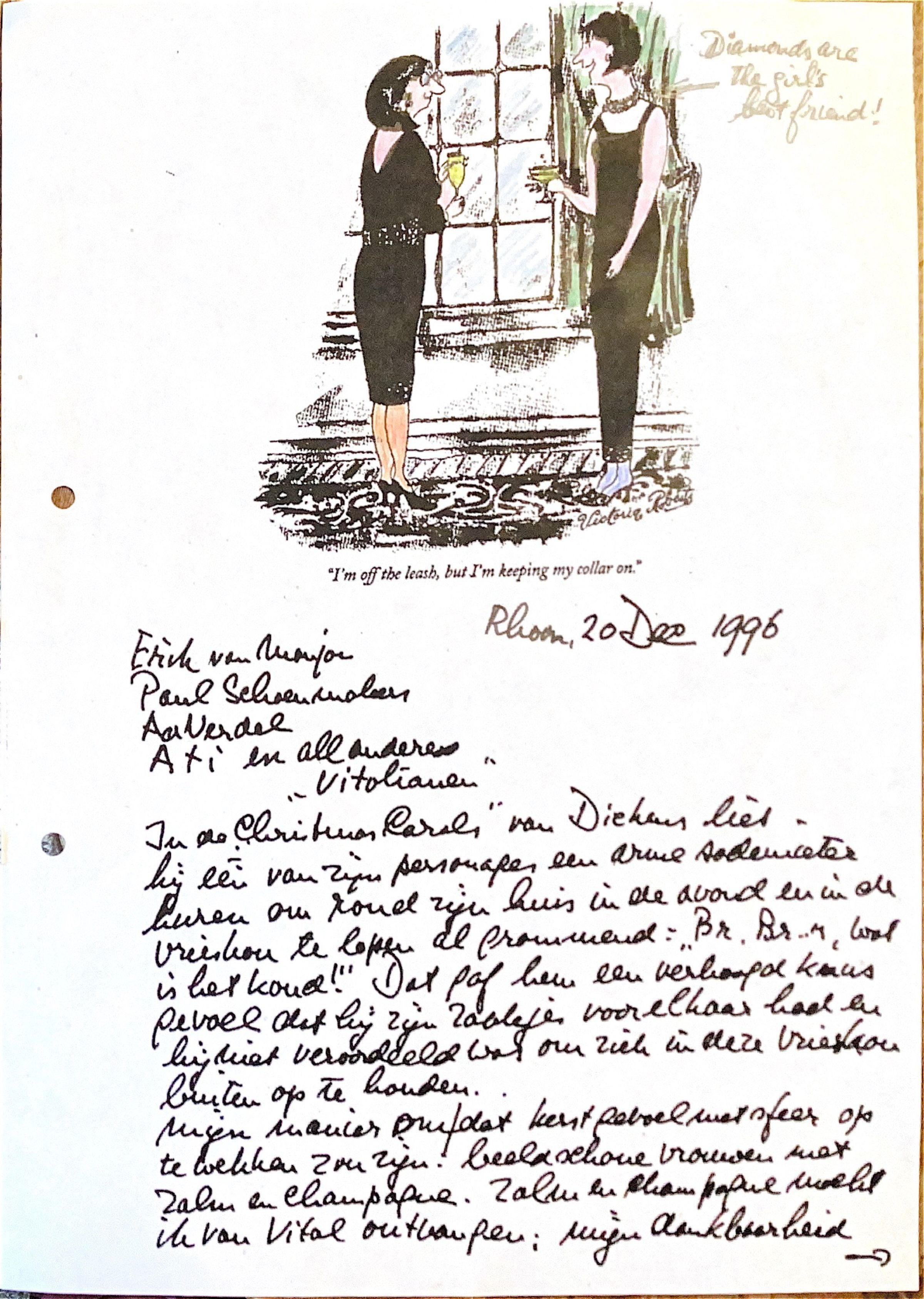 Mijn dankbaarheid voor deze geste is slechts gebrekkig in woorden uit te drukken. Daarom meen ik dat jullie (alleen voor Kerstmis) de beeldschone vrouwen maar aan de verbeelding, van de ontvangers van al jullie goedheid, moet overlaten.