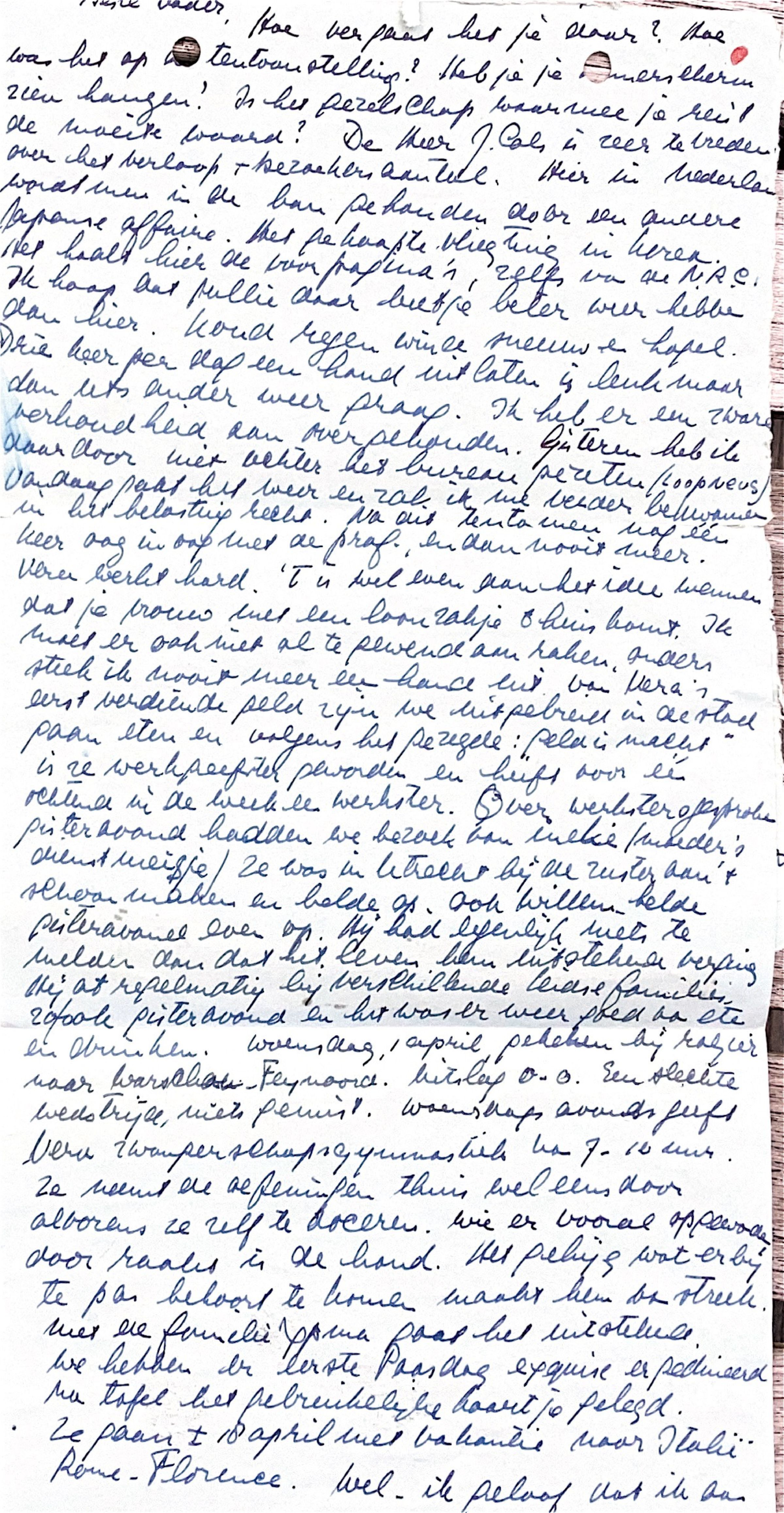 Met de familie Ypma gaat het uitstekend. We hebben er eerste Paasdag exquise gedineerd. Na tafel het gebruikelijke kaartje gelegd. Zij gaan ± 18 april met vakantie naar Italië; o.a. Rome en Florence.