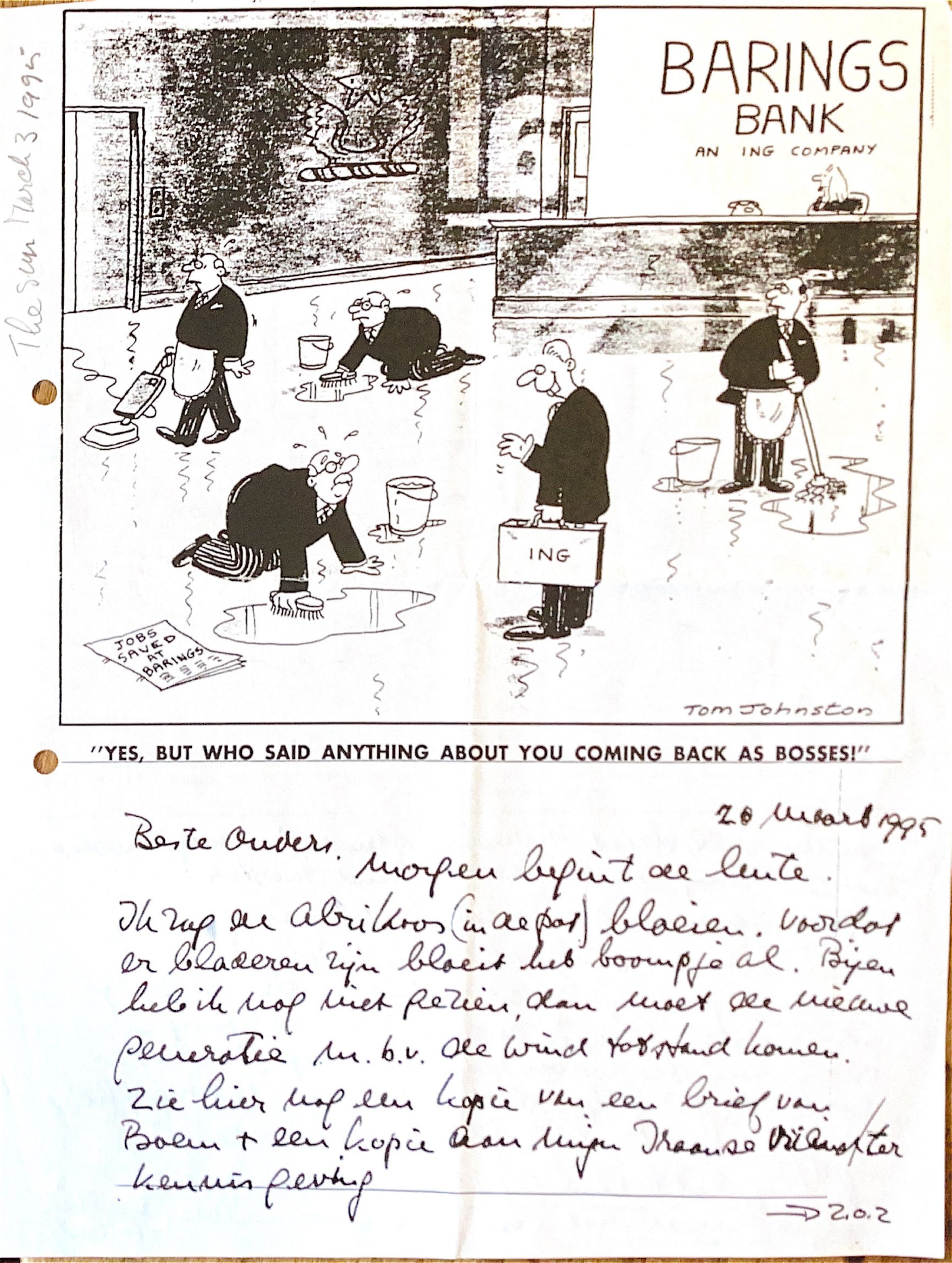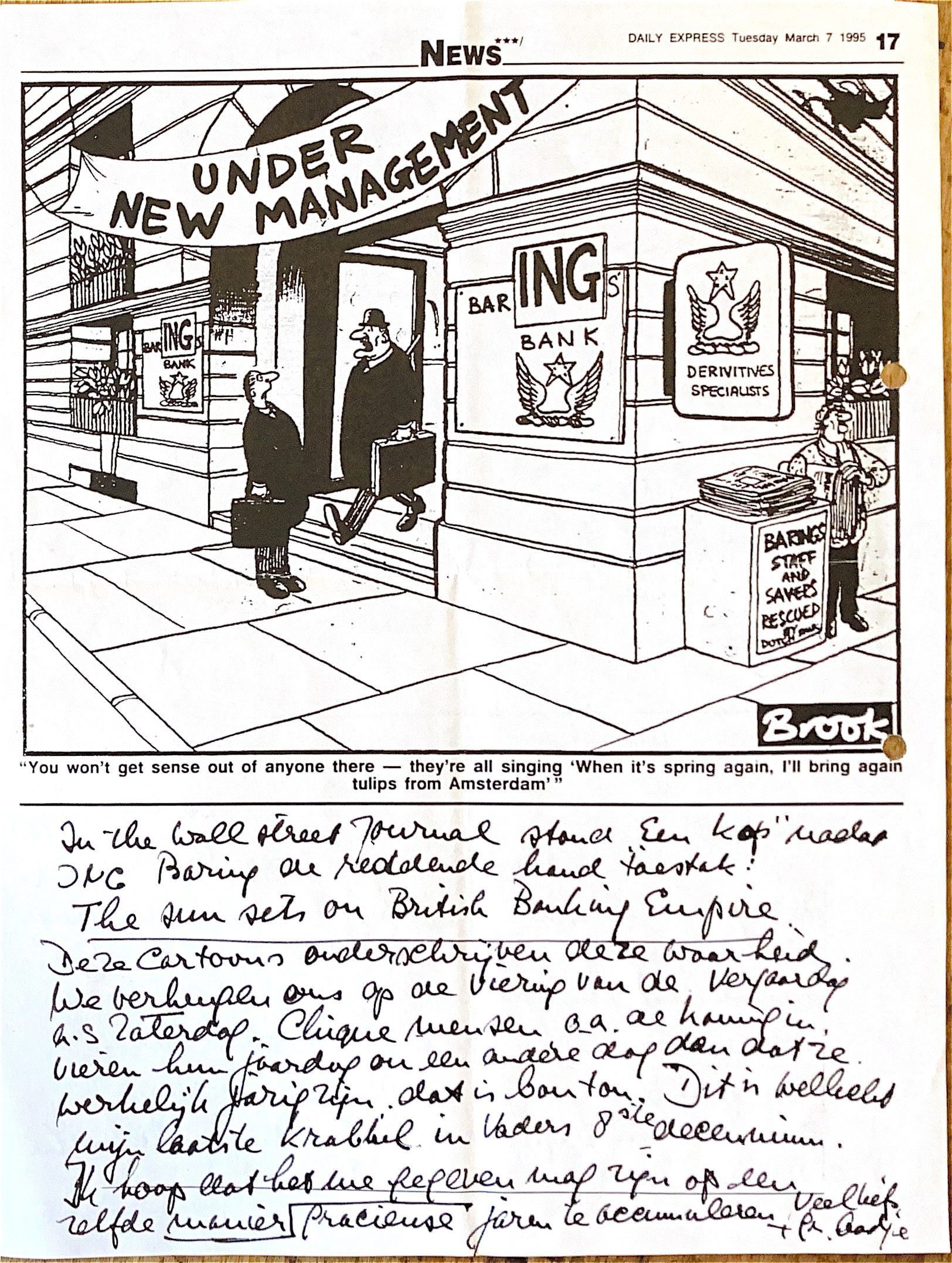 Nadat de Nederlandse ING-bank Barings-Bank de reddende hand toestak, stond er een dik gedrukt koptekst In the US Wallstreet Journal: