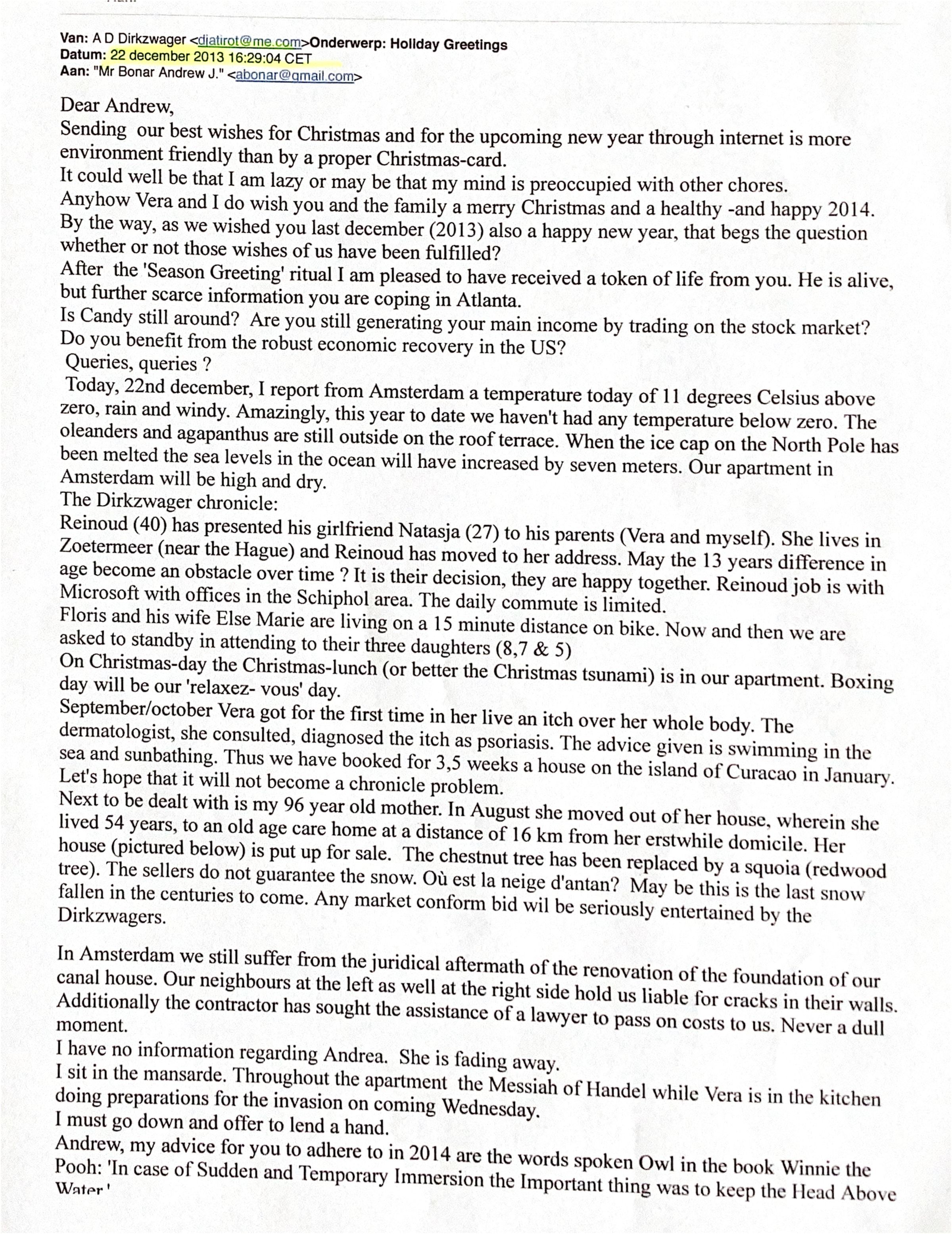 2013-12-22 Season Greetings to Andrew Bonar met foto v.d.besneeuwde Oude Pastorie in sHHK.