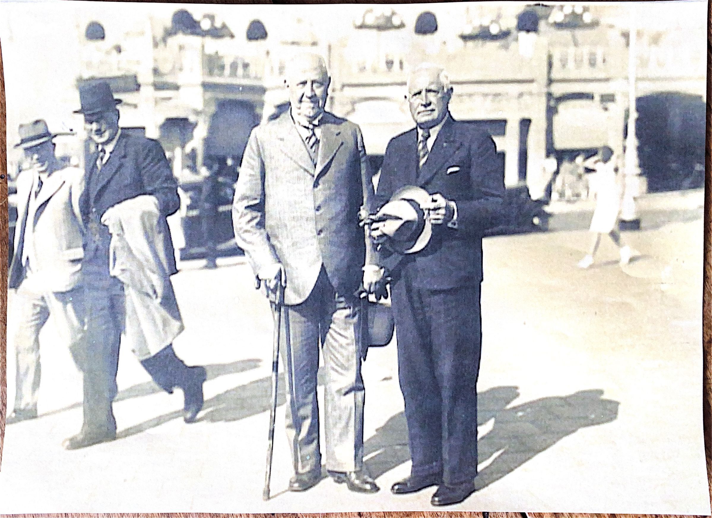 Begin juli j.l. werd dit kiekje van je vader en mij genomen en hoop ik dat je ons er uit herkennen kunt. We hadden een gezellig dagje in Scheveningen. Het gaat met jelui ouder uitstekend en ik heb met Abs moeder een dag of 14 geleden een dansje gemaakt in het Casino; wel een bewijs hoe goed zij vooruitgaat. Ik ga 15 sept. a.s. van Genua met de 'Oranje' naar mooi Java terug en blijf nog maar een halfjaar. In mei ga ik weer terug.
