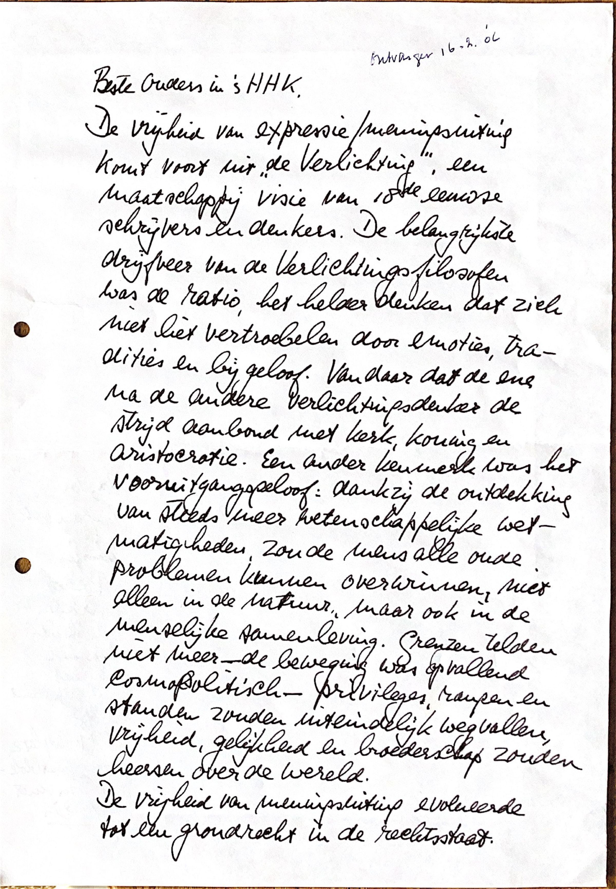 De vrijheid van expressie/meningsuiting komt voort uit "de verlichting," een maatschappij-visie van de 18de eeuwse schrijvers en denkers. De belangrijkste drijfveer van de Verlichtingsfilosofen was de ratio, het helder denken, dat zich niet liet vertroebelen door emoties, tradities en bijgeloof. Vandaar dat de ene na de andere verlichtingsdenker de strijd aanbond met de kerk, de koning en de aristocratie.