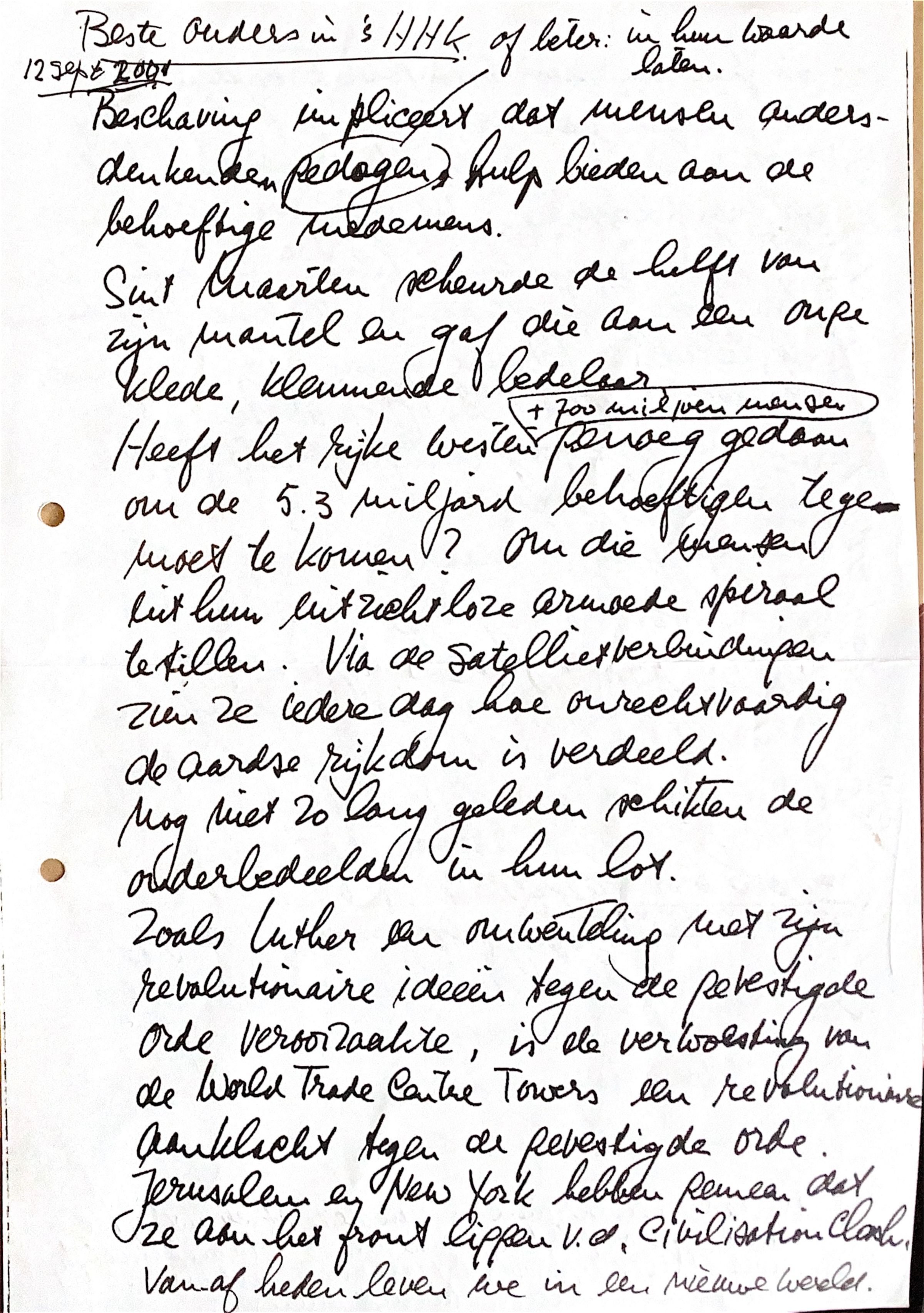 Terwijl je kijkt naar de ramp en via de TV er getuigen van bent, dan onderga je de beelden en de verslaggeving, maar er ontstaat ook in jezelf een machteloosheid en je stelt jezelf ook vragen af, omtrent de rechtvaardiging van de daad vanuit het standpunt gezien van de daders. Het moet een ideële haat zijn tegen de, in hun ogen, verworden samenleving van Amerika.