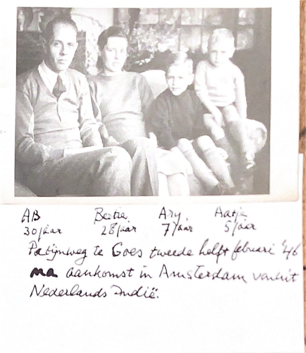 Ab & Bertie met de zonen aangekomen in Amsterdam vanui Ned-Indië