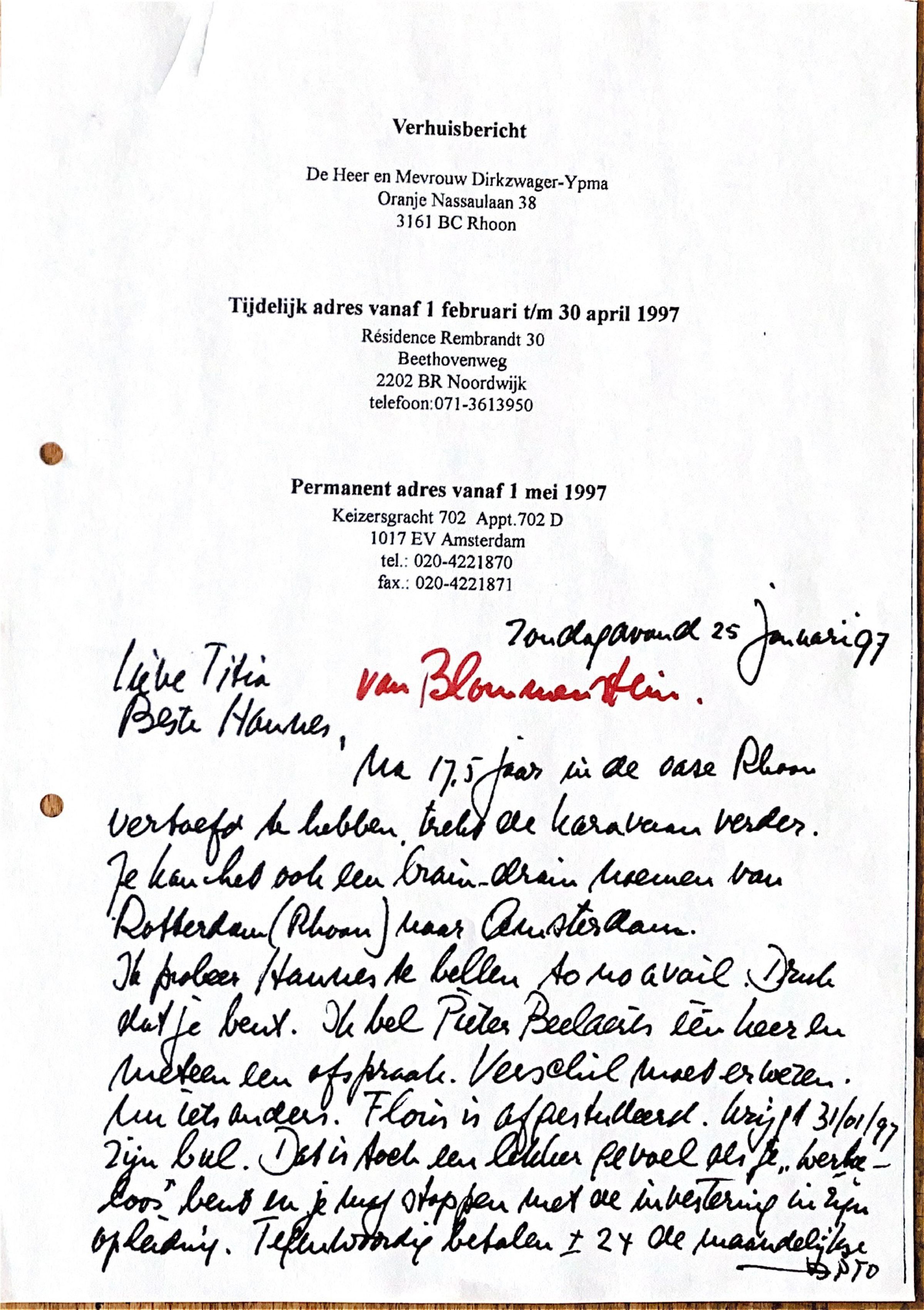 Tijdelijk adres vanaf 1 februari t/m 30 april 1997