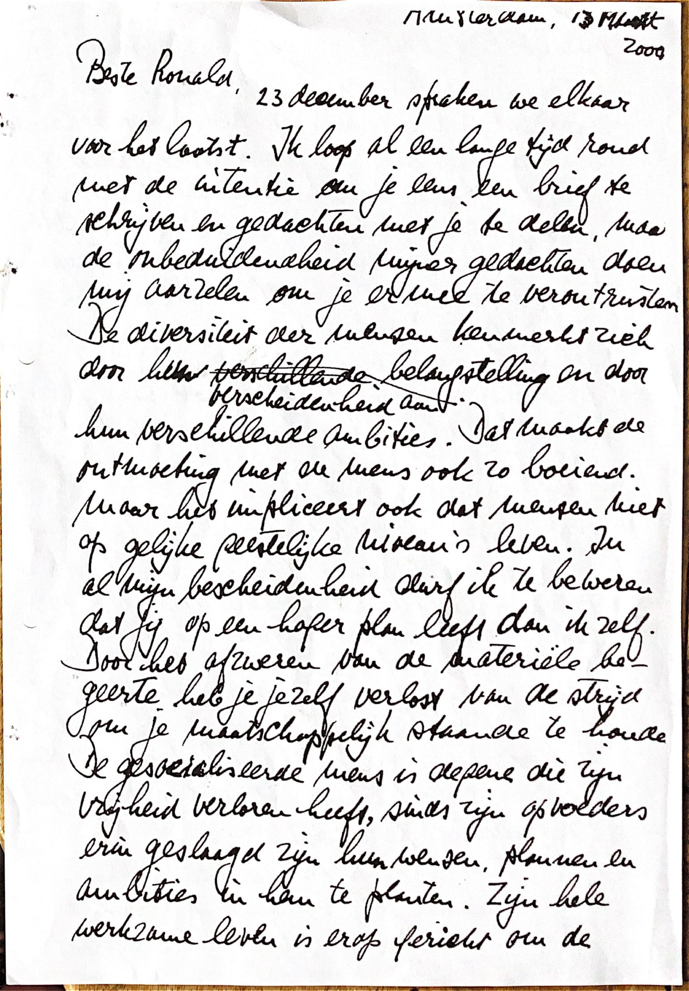 23 december 1999 spraken wij elkaar voor het laatst. Ik loop al een lange tijd rond met de intentie om jou eens een brief te schrijven en gedachten met je te delen, maar de onbeduidendheid mijner gedachten doen mij aarzelen om je ermee te verontrusten.