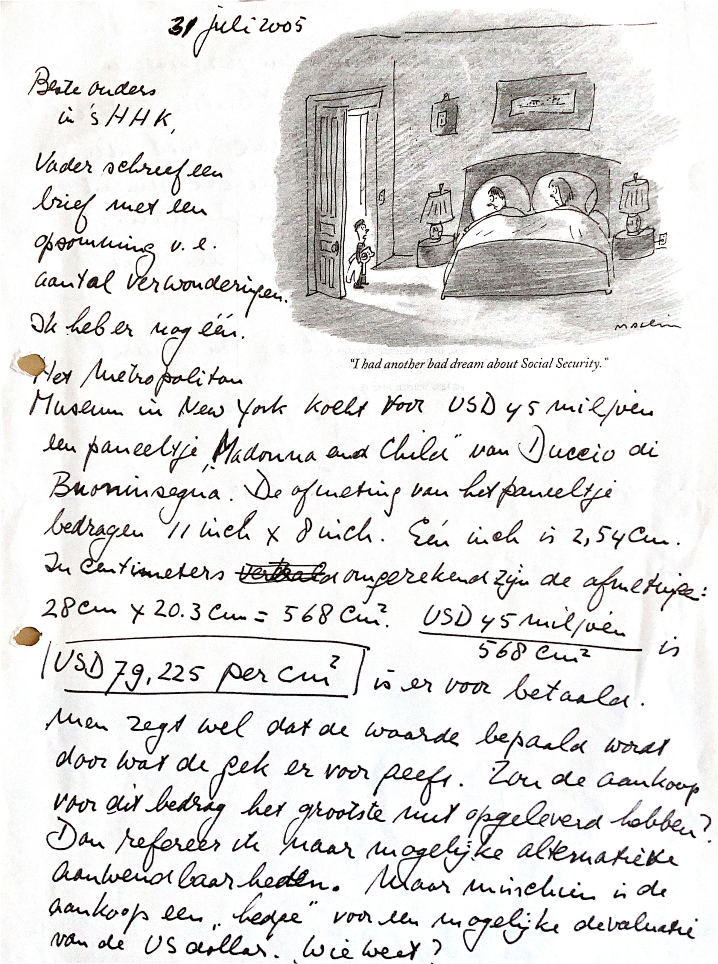 Vader schreef een brief d.d. 23/24 juli 2005 met een opsomming van een aantal