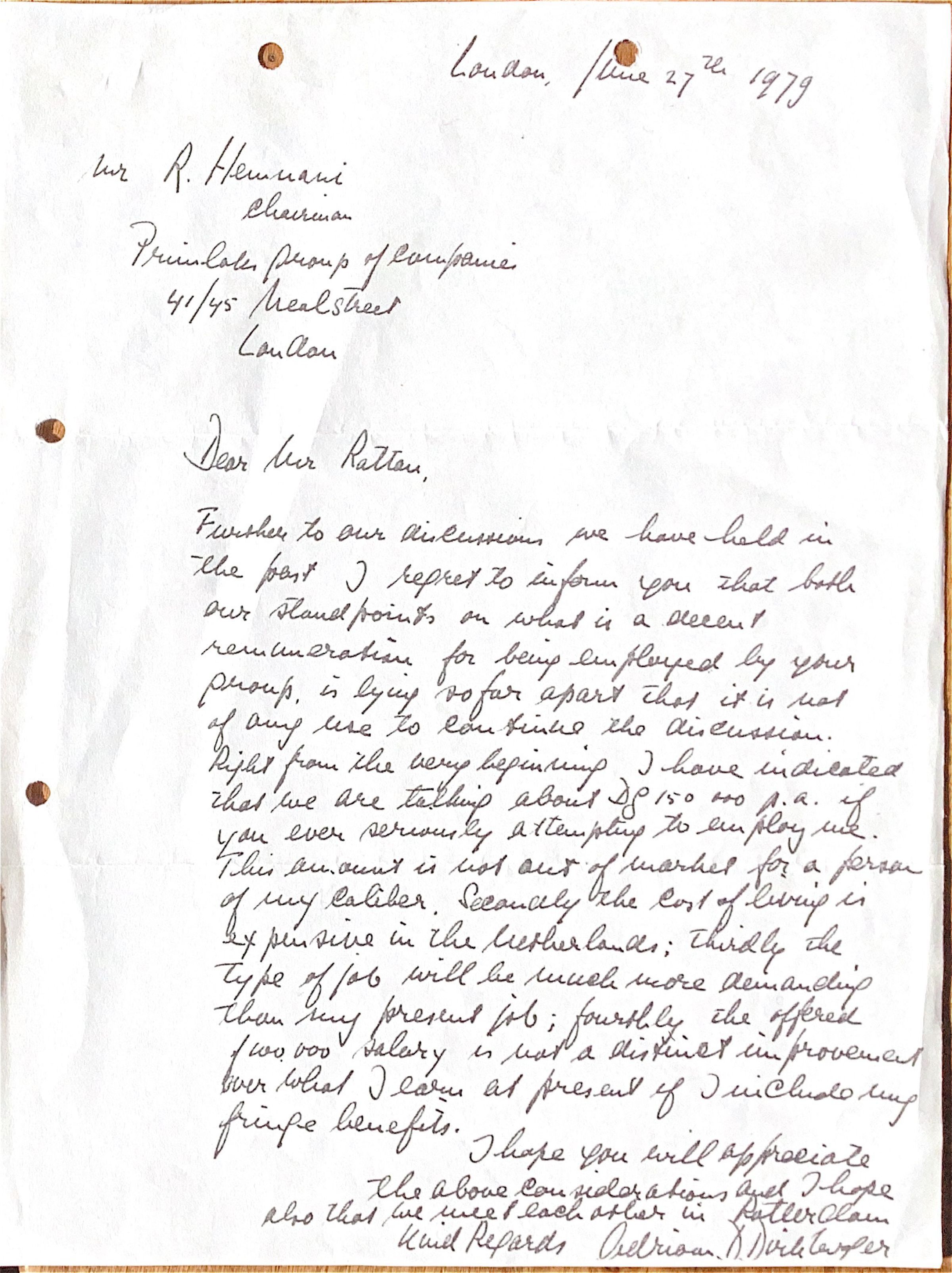 I hope you will appreciate the above consideration and I hope also that we meet each other in Rotterdam.