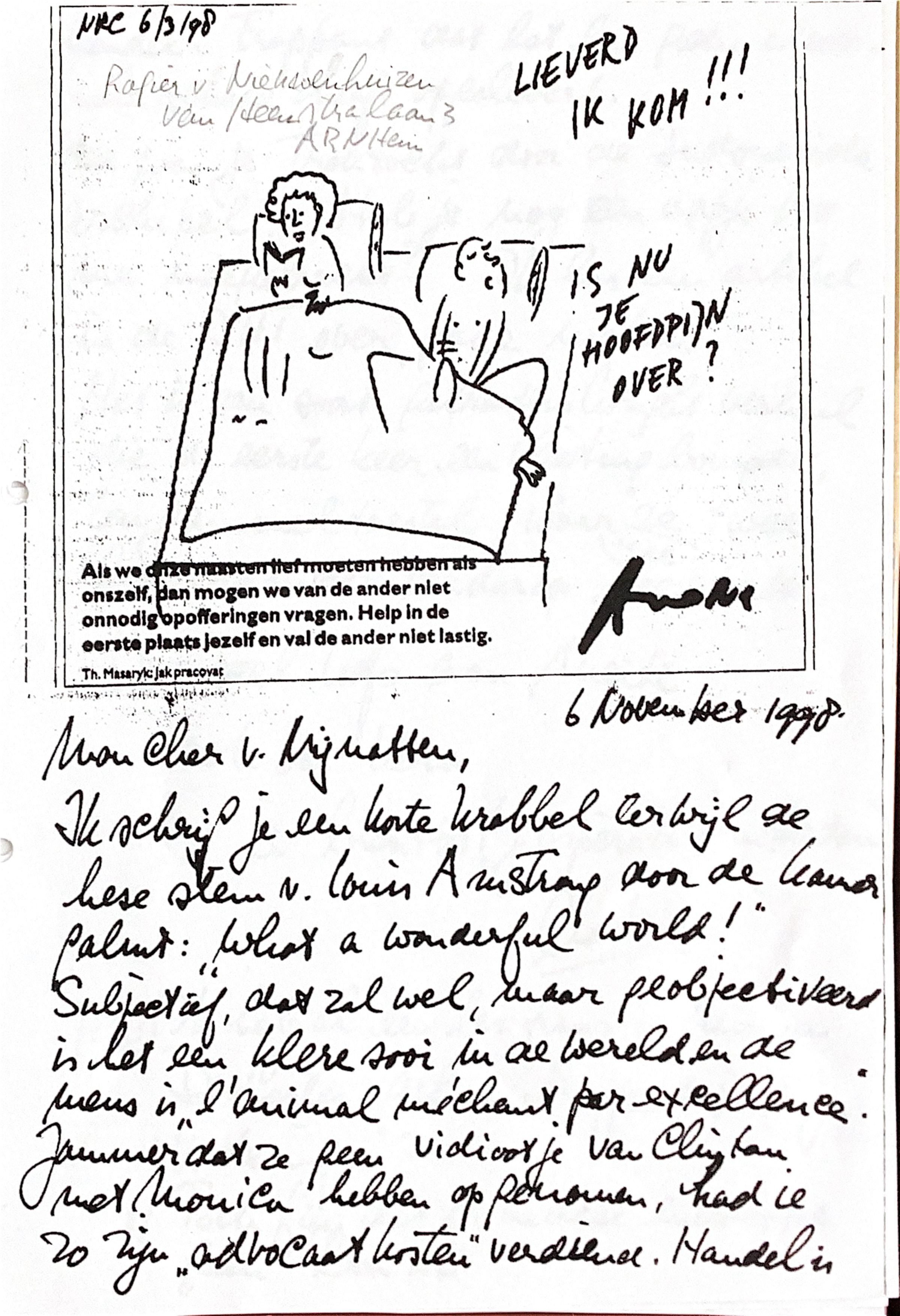 Ik schrijf je een korte krabbel terwijl de hese stem van Louis Amstrong door de kamer galmt: "What a wonderful world !!